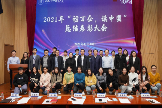 11 月 18 日下午,2021年“访万企,读中国”社会调查项目(简称“万企调查”项目)总结表彰大会在学校松江校区图书馆思源报告厅举行。学校副校长徐永林,党委宣传部部长郭茜,统计与信息学院党委书记范登峰、院长刘永辉,教务处副处长(主持工作)朱建明,统计与信息学院副院长刘慧、王利娟,团委副书记范鸣以及参加了2021年“万企调查”项目的师生出席会议。商务部中国对外经济贸易统计学会名誉会长王亚平、环球慧思(北京)信息技术有限公司总裁邵宏华进行视频致辞,会议由统计与信息学院党委副书记(挂职)李睿主持。