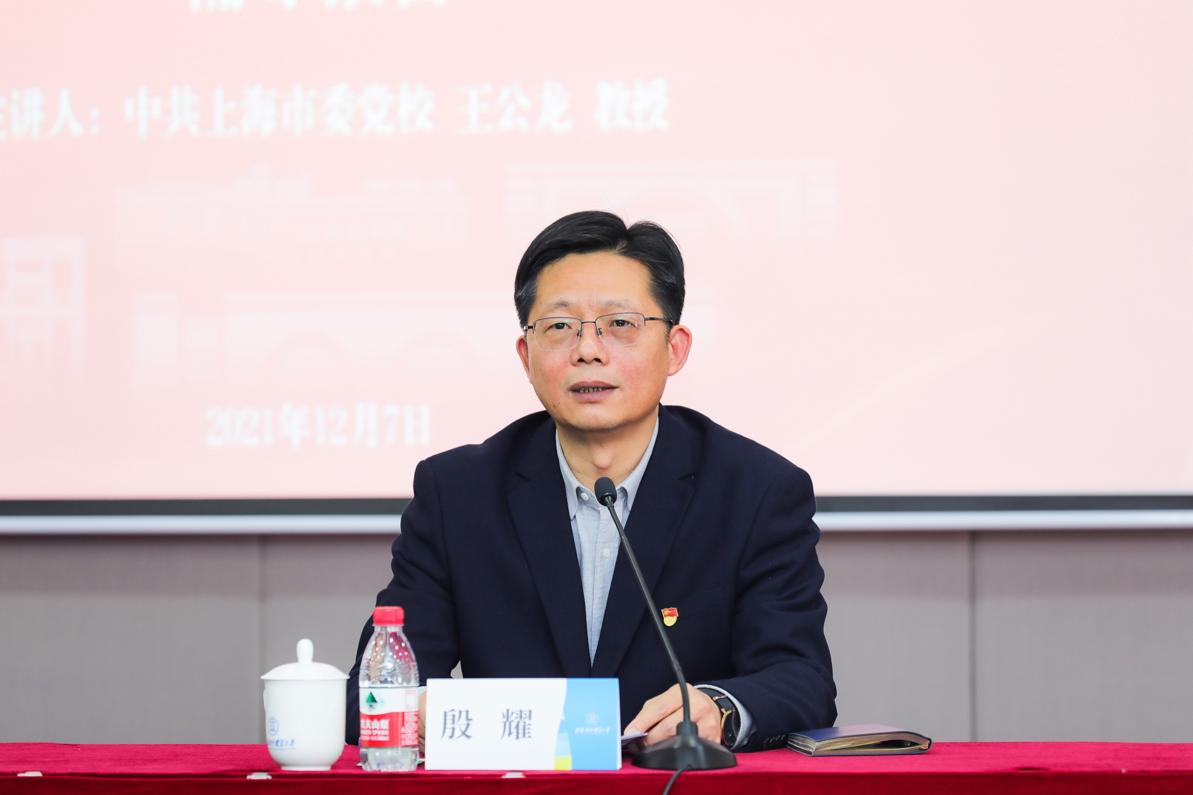 为深入学习贯彻党的十九届六中全会精神,深入推进党史学习教育,从党的百年伟大奋斗历程中进一步汲取继续前进的智慧和力量,12月7日下午,学校在信息楼507报告厅举行党委理论学习中心组学习(扩大)会,邀请中共上海市委党校马克思主义学院执行院长王公龙教授作“坚持和发展中国特色社会主义的政治宣言——深入学习贯彻党的十九届六中全会精神”专题辅导报告。学校党委中心组成员,全体中层干部、二级纪委委员及纪检委员,支部书记、专(兼)职组织员、第六期青年骨干教师培训班学员,统战系统成员参加学习会。会议由校党委书记殷耀主持。