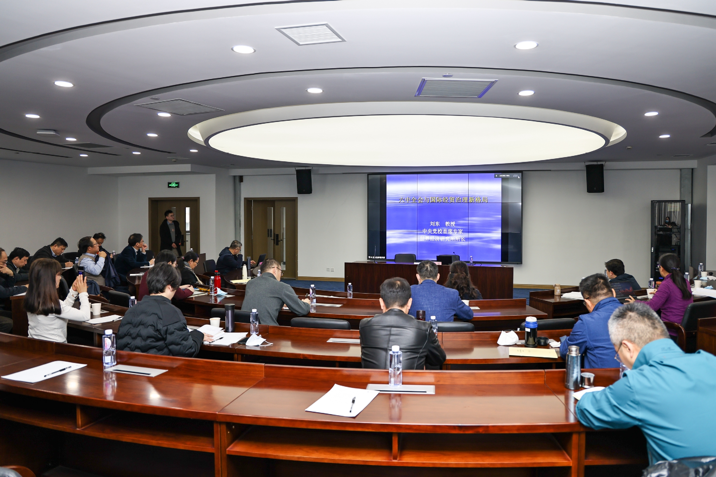在访谈式教学环节,贸易谈判学院院长、WTO讲席特聘教授张磊和中共中央党校首席专家、世界经济研究所所长刘东共同围绕“六中全会与国际经贸治理新格局”主题进行专题讲授。