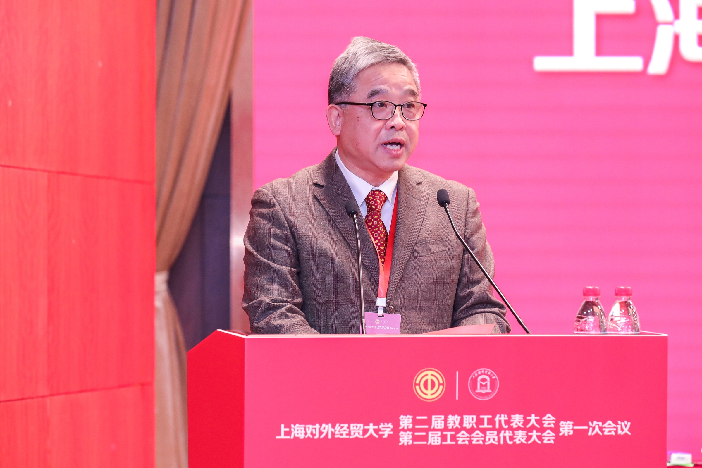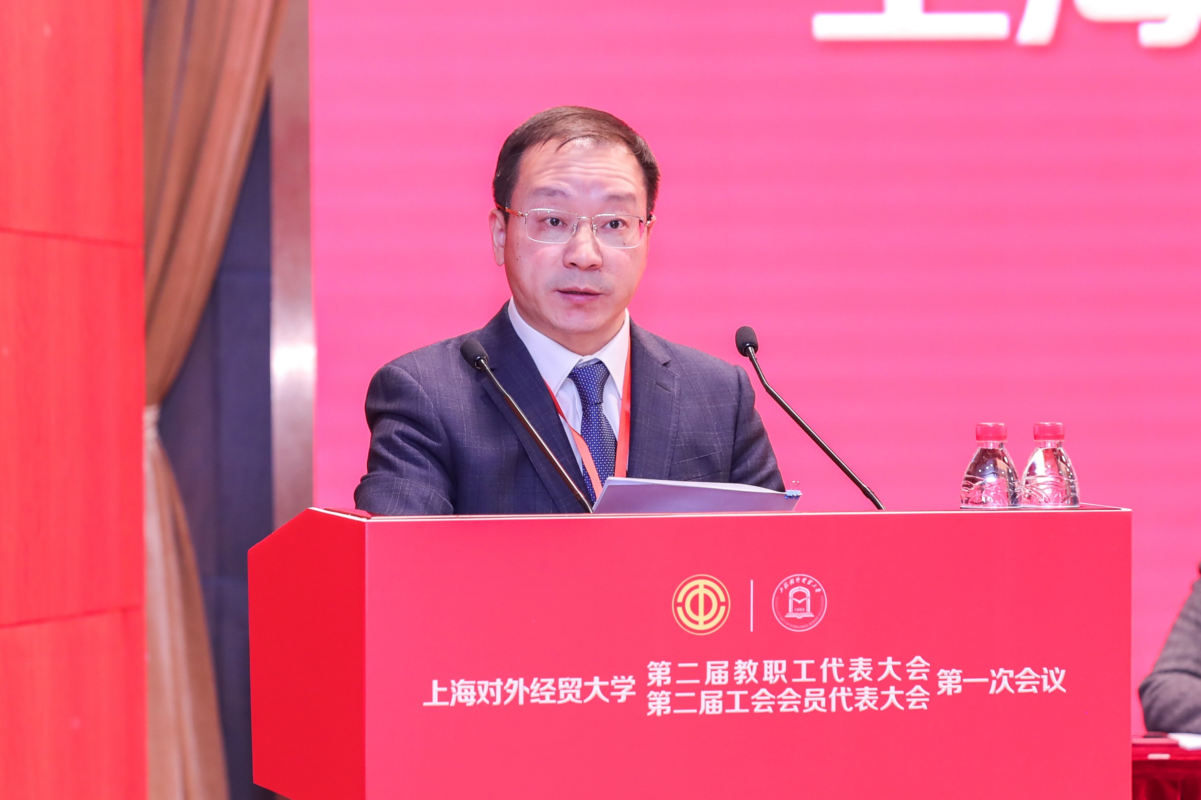 汪荣明向大会作题为《踔厉奋发踵事增华向世界知名、国内一流、特色鲜明的高水平财经类大学铿锵迈进》的行政工作报告。报告回顾总结了2020年以来学校事业发展情况,提出了2022年主要工作的思考和重点任务,明确了学校维护师生权益的主要思路和举措。