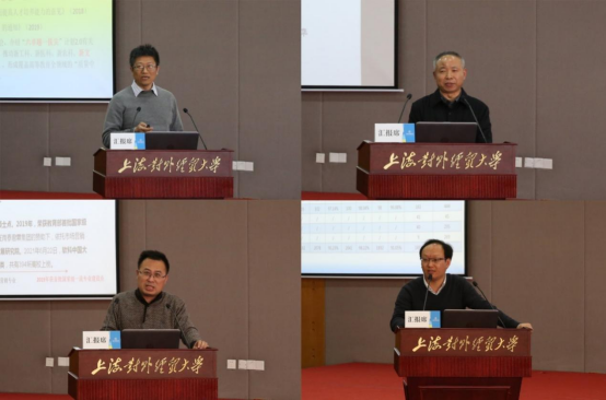 会上,国际经贸学院茹玉骢、金融管理学院吴腾华、工商管理学院谢佩洪、教务处朱建明分别作了《国际经济与贸易一流专业建设情况和问题思考》《“金融学国家一流本科专业建设点”阶段性专业建设汇报》《基于新商科理念的“四位一体”市场营销专业人才培养改革探索》和《以新一轮审核评估为契机,全面提升本科人才培养质量》的专题报告。各教学单位结合自身学科专业特点,就下一步推进一流本科专业建设的思路和举措进行了深入探讨。