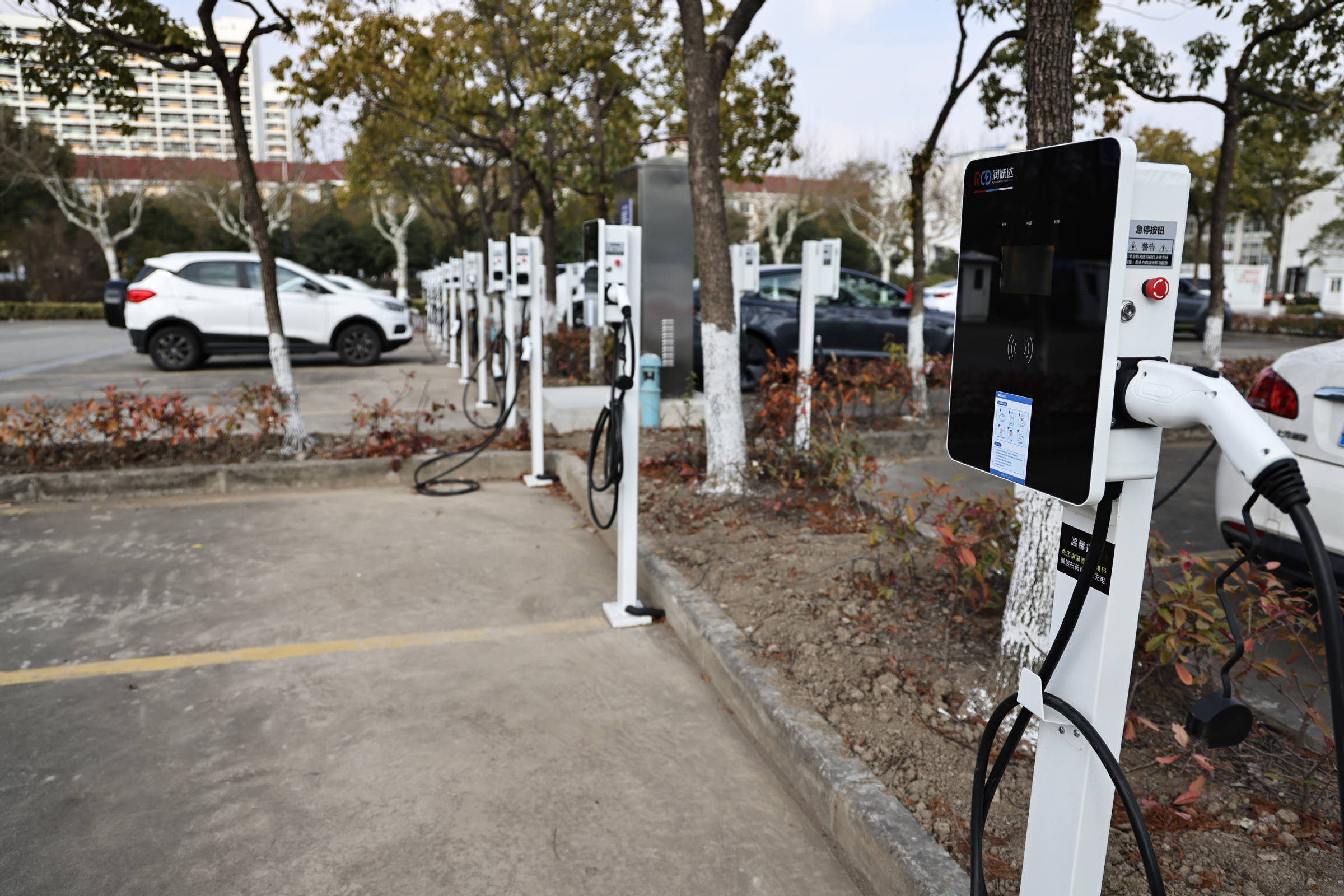 在校园里,工作组就重点项目中的校园环境提升计划、食堂“暖胃”计划、新能源充电桩安装等项目落实情况进行实地察看。后勤综合管理处处长杨晓雁汇报了项目完成情况和下一步工作计划,校园环境提升计划中的“路灯亮化工程”“集中扫楼行动”“环境美化工程”全部如期完成,半年多以来,校园环境得到较大改善,师生反映学校的灯亮了、景色好了、基础设施更新了、学习生活环境更舒心了。食堂“暖胃”计划着重提升食堂菜品质量、改善食堂就餐环境、改造教学楼简餐点等等。为解决教职工新能源车应急充电难题,2021年12月底前32个新能源充电桩全部交付使用。在充电桩安装点,多部新能源车有序充电,后勤综合管理处工作人员讲解了充电桩的使用流程和管理方式。