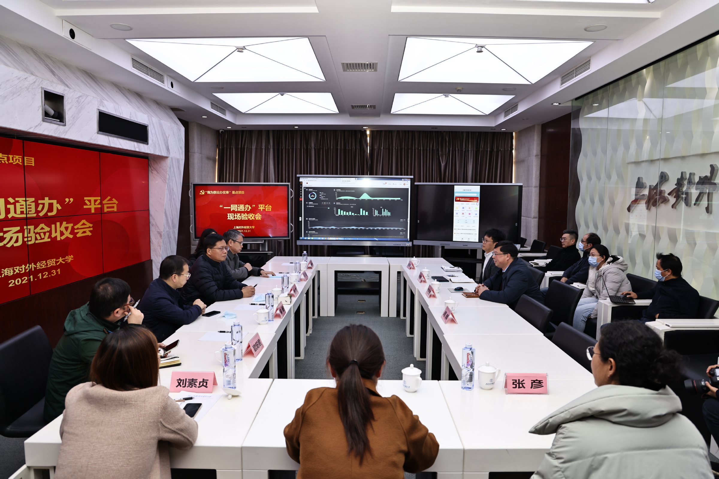 在图文信息大楼视频会议实验室,信息化办公室、信息技术中心主任罗玉宏汇报了重点项目——“一网通办”平台建设运行情况。作为师生关注度最高的项目之一,“一网通办”平台得到学校领导的高度重视,由信息化办公室、信息技术中心牵头建设,经过半年多的集中调研、系统谋划、测试运行,提前于2021年9月底运行,一期上线整合100余项服务内容,受到了师生好评。“一网通办”平台打造一站式信息化服务门户,PC端和手机客户端同步上线,实现“数据多跑路、师生少跑腿”,让师生切实感受到“智慧校园”的新变化、新成效。信息化办公室副主任刘亮亮现场演示了“一网通办”平台智能化、便捷化的操作系统。工作组针对“一网通办”建设情况进行了讨论,并就下一步建好数据中心、实现“智慧校园”提出了希望和建议。