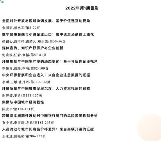 近日,必赢626net入口首页师生合作的两篇学术论文在国内经济学科中文权威期刊《世界经济》2022年第1期同期刊出,分别为何欢浪、任岩和章韬的合作论文《媒体宣传、知识产权保护与企业创新》以及余丽丽与彭水军的合作论文《全面对外开放与区域协调发展:基于价值链互动视角》,这是必赢626net入口首页师生潜心学术、探索未知,凭执着和坚守收获科研路上又一次新突破。