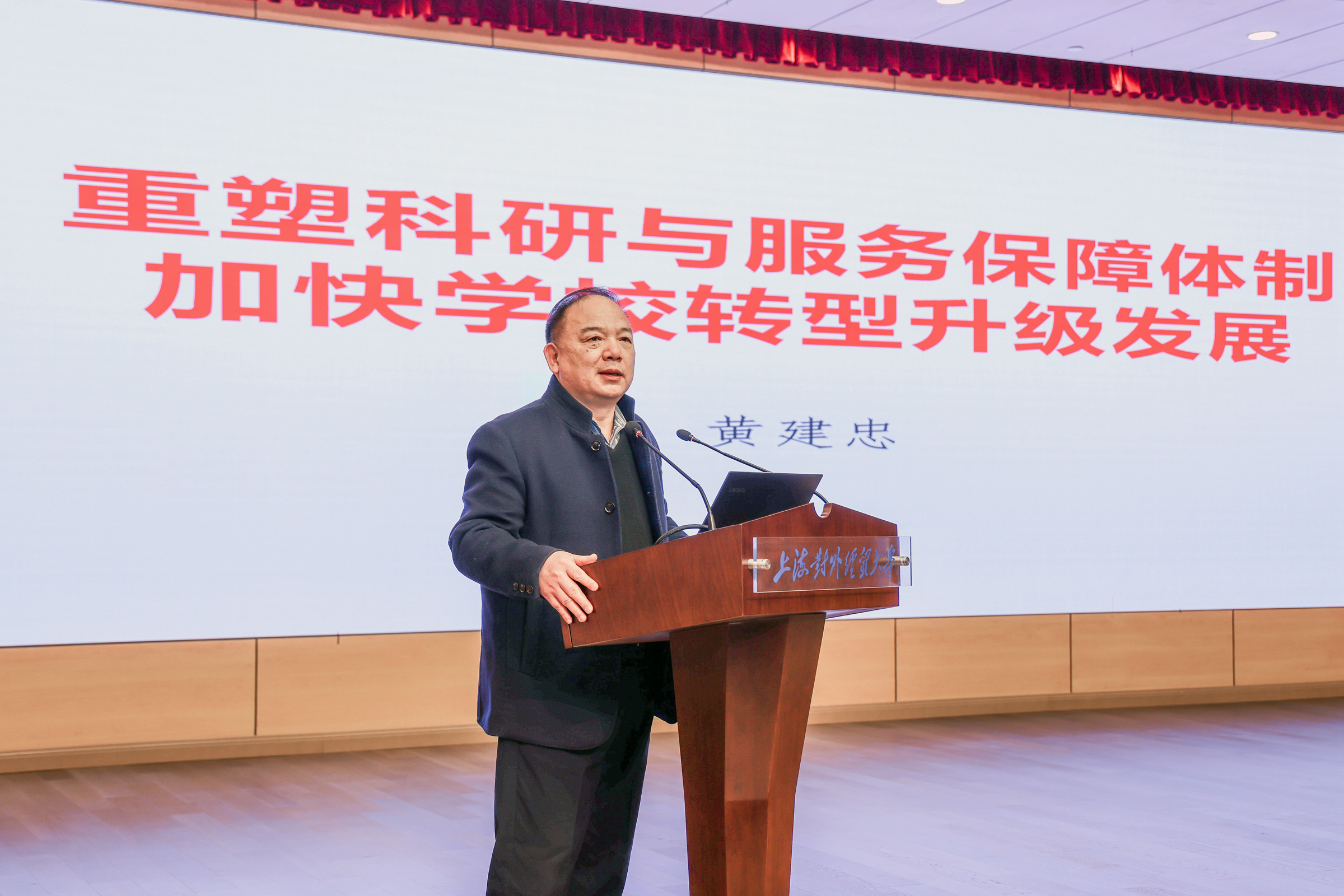 会上,研究生院院长、国际经贸学院院长黄建忠作了题为“重塑科研与服务保障体制,加快学校转型升级发展”的主题发言。他分析论述了学校实现“十四五”愿景的基础,提出了学校转型升级的主要支撑手段,并强调要通过科研体制改革实现科研引领,重塑服务管理体制机制,建设“有科研的组织”,实现“有组织的科研”。