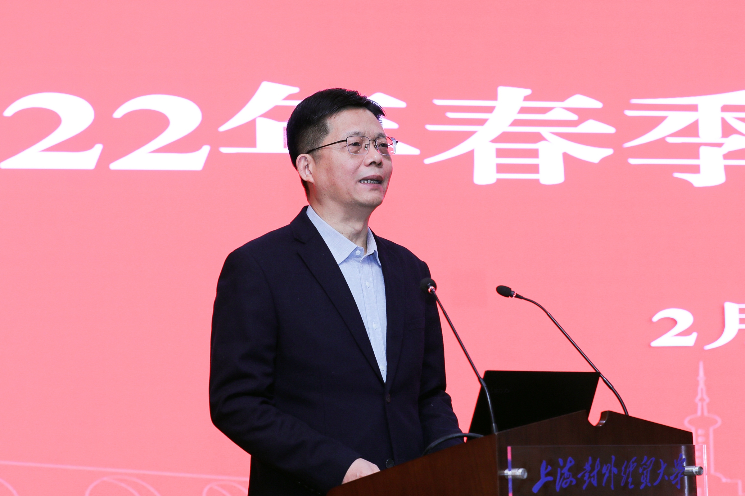 他指出,2021年全校师生砥砺奋进,学校各项事业蓬勃发展,办学层次迈上新台阶,全面开启建设“世界知名、国内一流、特色鲜明的高水平财经类大学”新征程。2022年是我国进入全面建设社会主义现代化国家、向第二个百年奋斗目标进军新征程的重要一年,是学校落实党代会目标、建设高水平地方高校的开局之年。学校进入了新的发展阶段,使命光荣、责任重大,同时更要保持清醒、直面问题,以“争第一、创一流”的决心,跑好我们这一代人的接力棒!