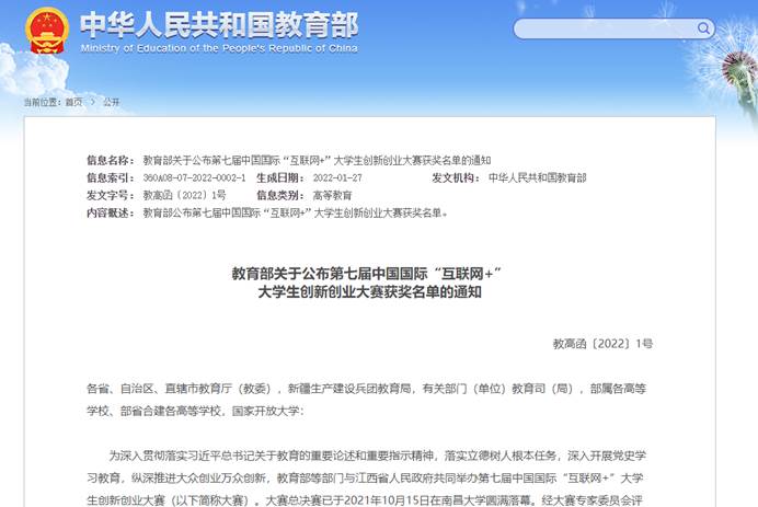 2月22日,教育部官网发布教高函〔2022〕1号文,公布了第七届中国国际“互联网+”大学生创新创业大赛获奖名单。由必赢626net入口首页金融管理学院徐同飞老师、创业学院高伟老师、李伟铭老师共同指导,金融管理学院2019级财务管理(中加合作)专业本科生谌星潼同学作为队长的项目“树人总动员工作室——青年红色饭圈文化的引领者”喜获第七届中国国际“互联网+”大学生创新创业大赛总决赛全国铜奖。该项目是历届以来学校唯一获得该赛事国家级奖项的本科生项目。