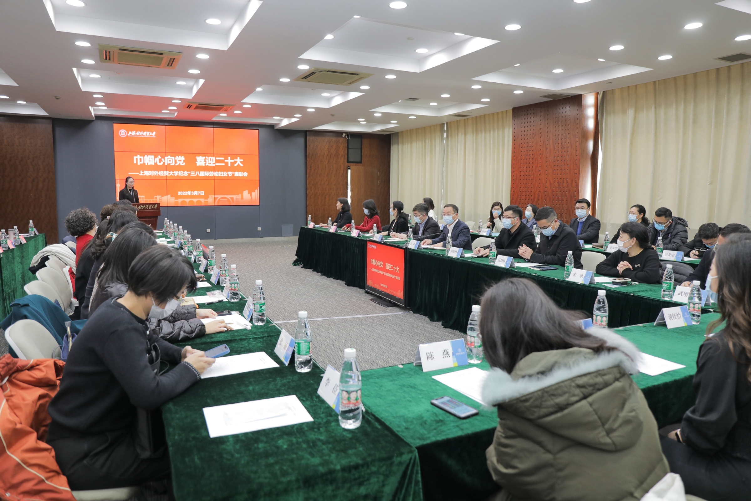 3月7日下午,主题为“巾帼心向党 喜迎二十大”的“三八国际劳动妇女节”表彰会在松江校区图文信息楼503会议室举行。校党委副书记、校工会主席吴毅出席会议并致辞,校工会委员、经审委员、女工委员,各二级工会主席、女工委员,女性先进集体和个人获奖代表等出席会议。会议由校妇工委副主任、工会女工委副主任居怡主持。