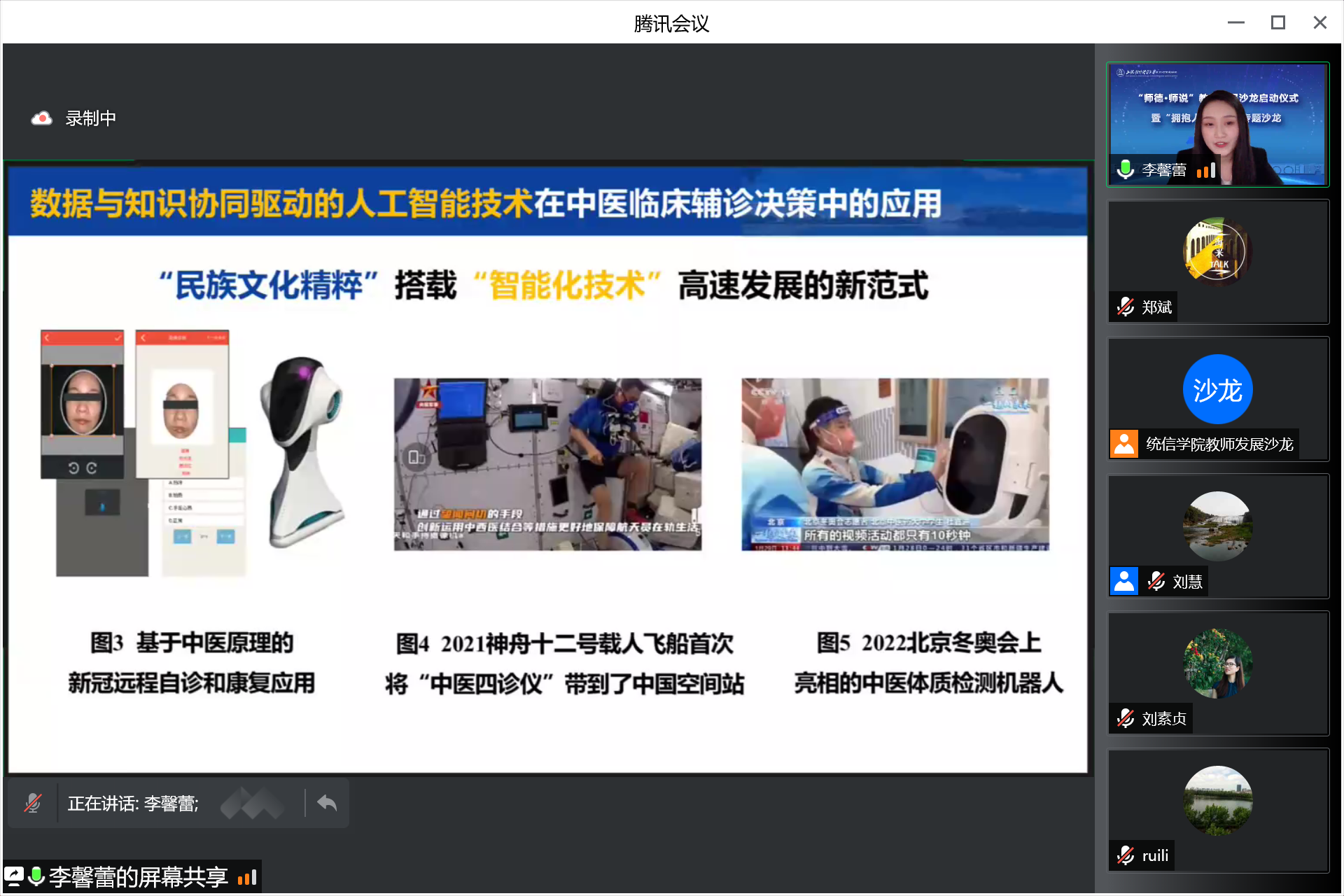 统计与信息学院李馨蕾博士就《数据与知识协同驱动的人工智能技术在中医临床辅诊决策中的应用》进行分享,介绍了人工智能发展的三个时代,阐述了第三代人工智能技术在中医辅诊决策中的作用机制和应用前景。董云朝副教授作点评。