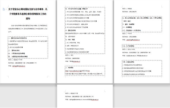 为做好疫情期间的部门管理服务工作,外事处党员带头,群众响应,第一时间向全校发布了《关于居家办公期间国际交流与合作事务、孔子学院事务及港澳台事务管理服务工作的通知》,努力做到抗疫不松懈,居家办公不停歇。