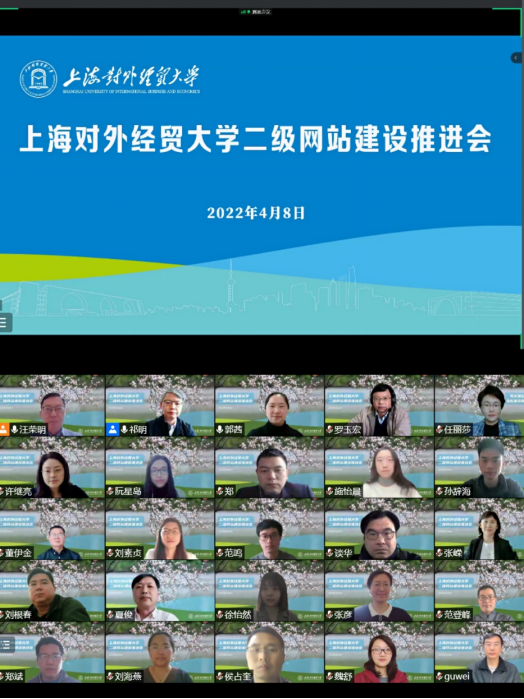 为整体推进学校网站建设,全方位、立体化展示学校核心办学成果和最新动态,4月8日下午,学校通过线上会议方式召开二级网站建设推进会。校长汪荣明,校党委副书记、副校长祁明出席会议,各二级单位党组织书记、各职能部门负责人、网站建设专员参加会议,会议由党委宣传部部长郭茜主持。