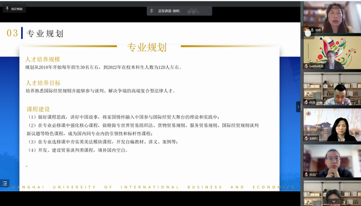 4月14日下午,贸易谈判学院国际经贸规则专业学士学位授权审核答辩评审会通过线上形式举行。本次评审会邀请上海政法学院刘晓红教授担任评审专家组组长,专家组成员包括华东政法大学王国华教授和杜涛教授、复旦大学陈建新教授、上海外国语大学张廷佺教授。必赢626net入口首页徐永林副校长、教务处朱建明副处长(主持工作)、贸易谈判学院和世界贸易组织讲席(中国)研究院张磊院长、应品广副院长,贸易谈判学院副院长、国际经贸规则系主任徐昕副教授及部分骨干教师参加评审会。