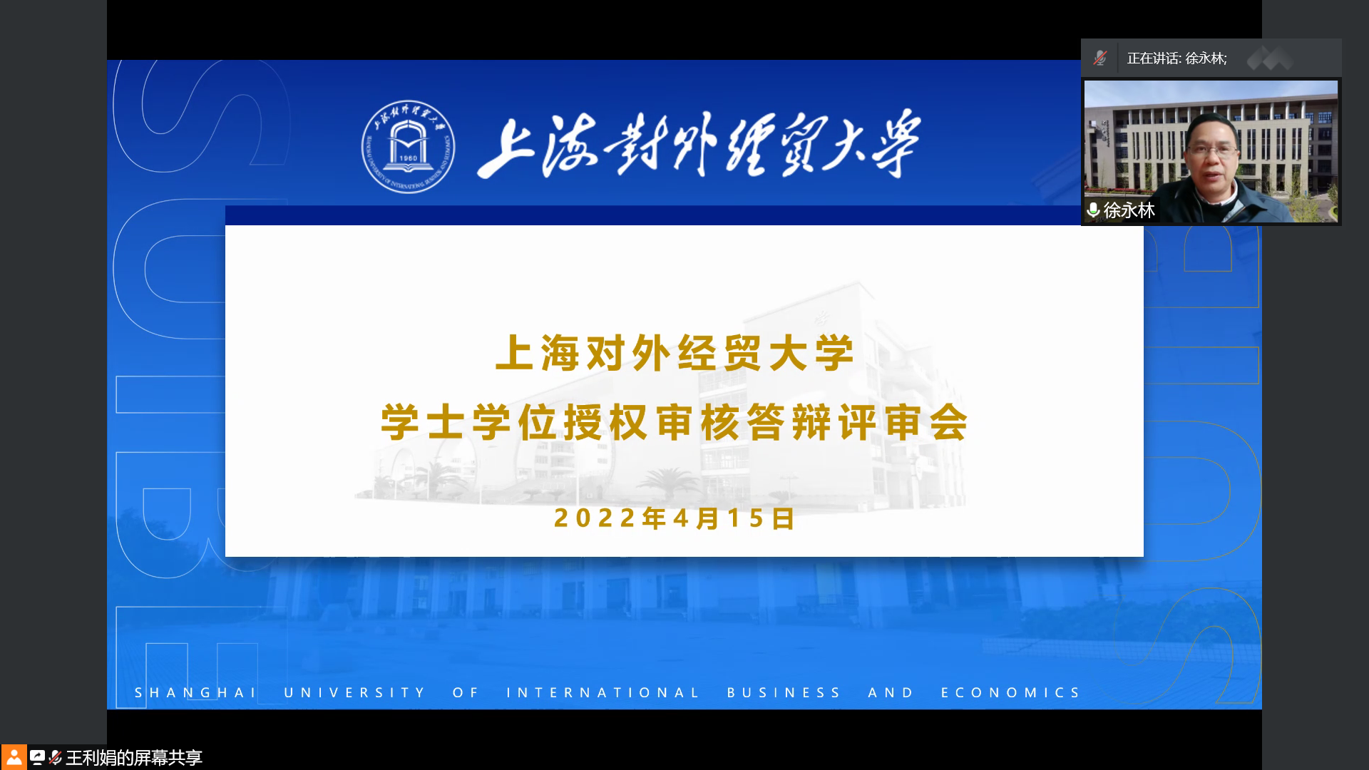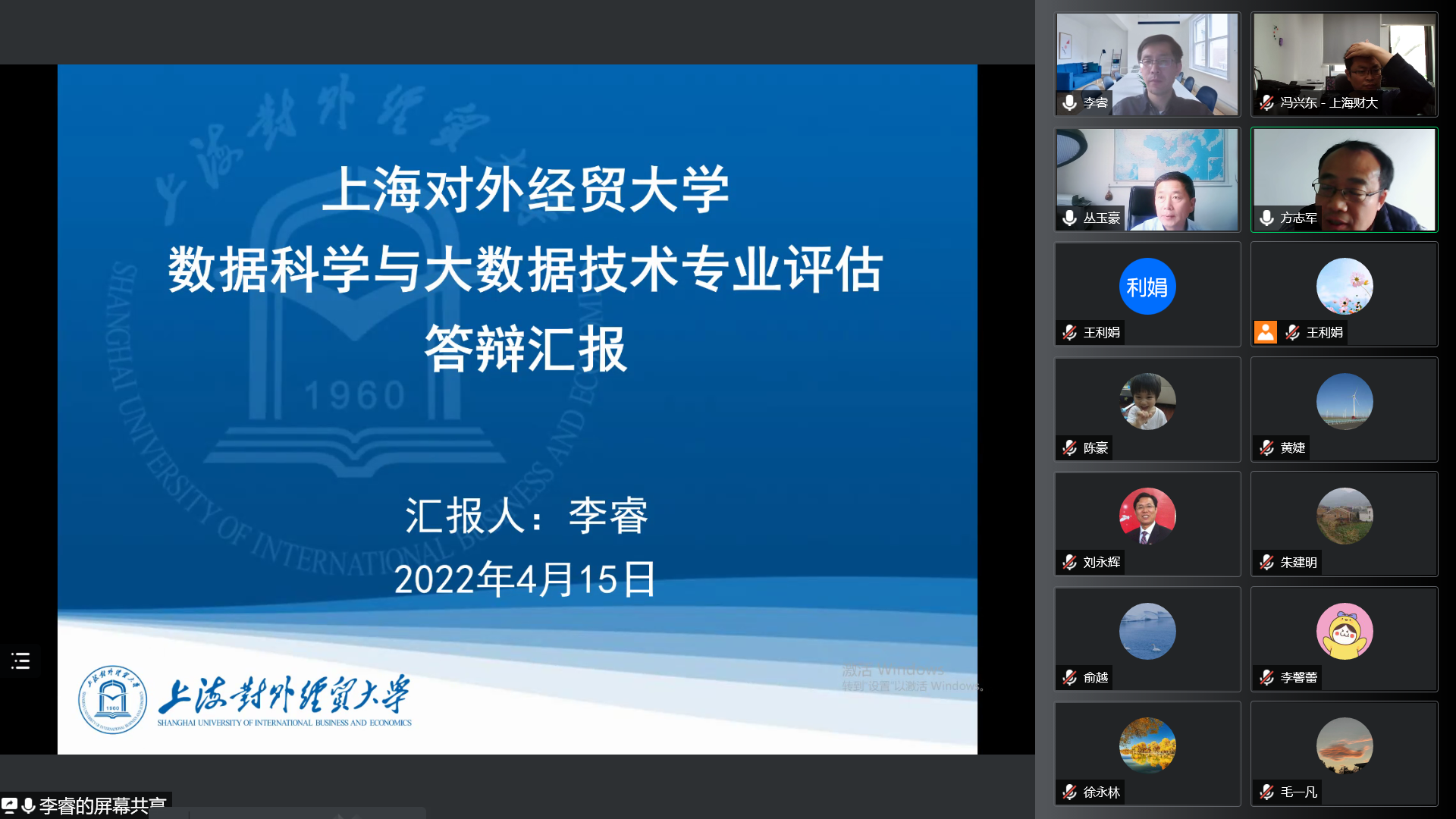 4月15日下午,统计与信息学院数据科学与大数据技术专业学士学位授权审核答辩评审会在线举行。本次评审会邀请上海海关学院校长丛玉豪教授担任评审专家组组长,华东理工大学黄婕教授、复旦大学高卫国教授、上海财经大学冯兴东教授、上海工程技术大学方志军教授等担任专家组成员。学校副校长徐永林出席会议并讲话,教务处副处长(主持工作)朱建明、副处长李医群,统计与信息学院院长刘永辉、副院长王利娟,统计与信息学院党委副书记、数据科学系系主任李睿,以及数据科学系部分骨干教师参加评审会。会议由专家组组长丛玉豪教授主持。