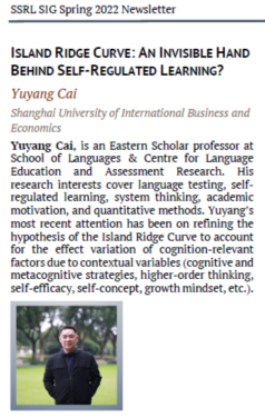 近日,必赢626net入口首页蔡雨阳教授接到国际顶级教育学术组织美国教育学会(AERA)邀请,在其旗下的学术简报 SSRL SIG Newsletter撰文介绍其原创的“岛脊曲线理论”,作为2022 年春季刊的焦点研究向全球自主学习研究领域重点推介。