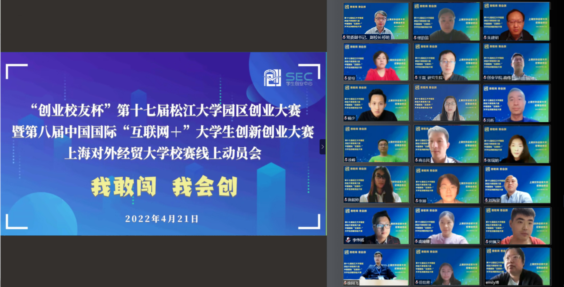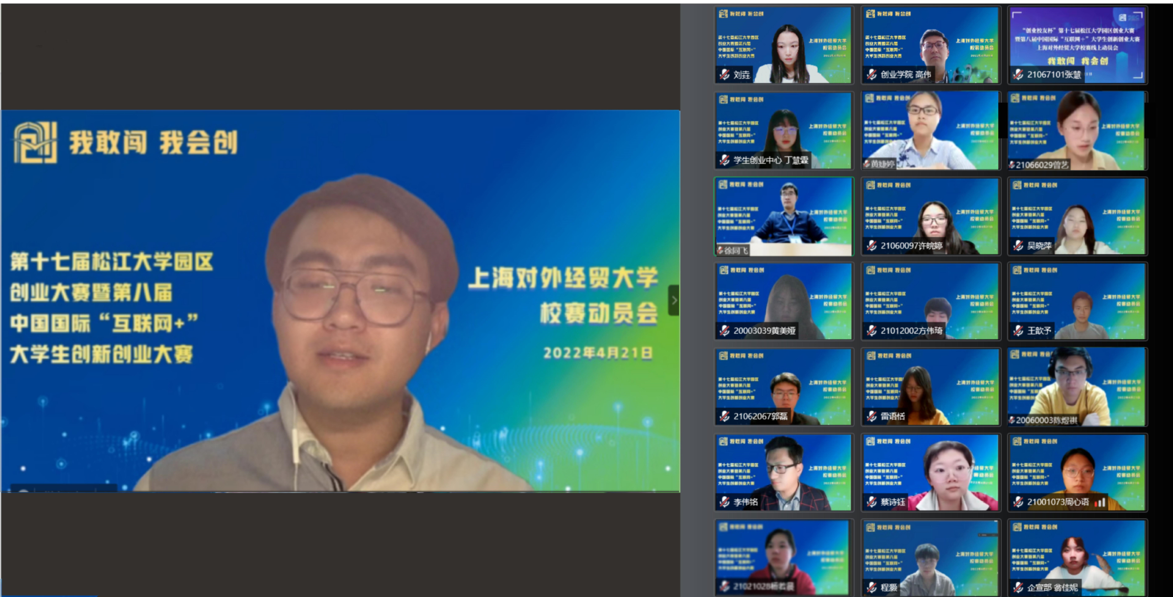 4月21日晚,学校举行“创业校友杯”第十七届松江大学园区创业大赛暨第八届中国国际“互联网+”大学生创新创业大赛必赢626net入口首页校赛线上动员会。校党委副书记、副校长、创业学院院长祁明,校友工作联络处处长晏琼,教务处副处长(主持工作)朱建明,研究生院副院长王磊,学生处副处长(主持工作)缪韵笛,创业学院副院长高伟,中国高校众创空间联盟副秘书长蒋楠,以及各学院领导和参赛师生参加了本次线上动员会。
