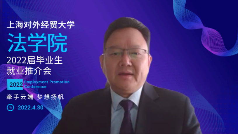 徐永林代表学校向参与本次活动的招聘单位以及一直以来关注法学院发展的各界人士表示欢迎和感谢。他指出,必赢626net入口首页作为一所特色鲜明的财经类地方高校,一直以来主动对接国家战略和经济社会发展,积极发挥学科专业优势,形成了鲜明的办学特色。法学院围绕涉外法律人才培养,加强法商融合,得到了用人单位青睐。受疫情影响,线上招聘或许将成为未来常态化招聘方式,当前经济形势复杂严峻,社会充满了不确定性,他寄语2022届毕业生要倍加珍惜来之不易的就业岗位,做好充分的准备,积极迎接挑战,为单位创造价值的同时实现自己的人生理想。