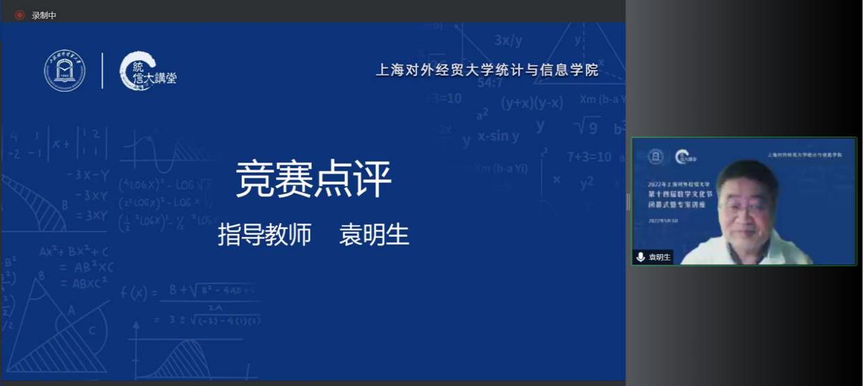 统计与信息学院数学系教授袁明生作为指导教师代表对本届数学文化节中的数学系列竞赛进行点评,他充分肯定了同学们在竞赛中展现出的专业能力和优异表现,并对同学们后续参赛提出了建议和指导。