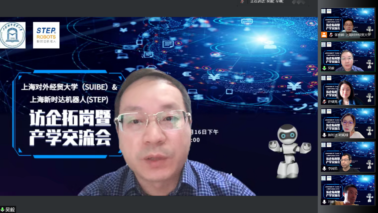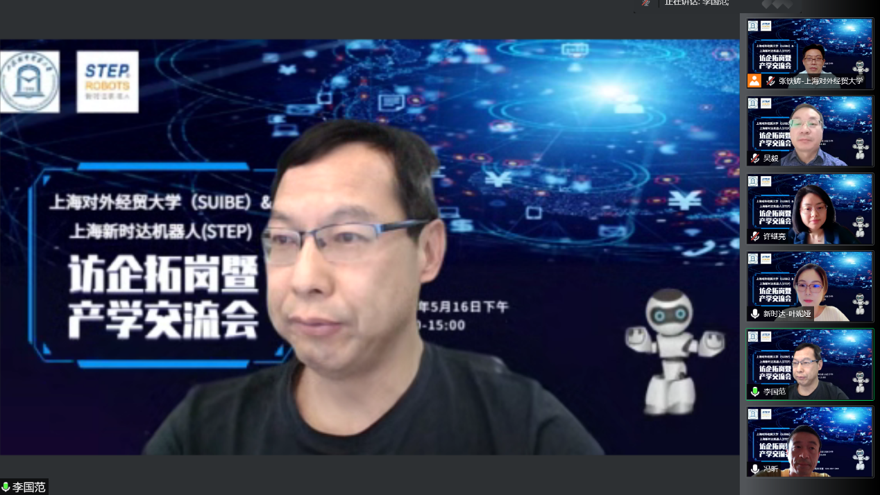 5月16日金融管理学院访企拓岗促就业专项行动新时达集团校企交流会在线举行。校党委副书记吴毅、新时达副总裁兼CEO李国范、金融管理学院党委书记许继亮、院长张铁铸、集团财务共享中心运营总监叶妮娅、副书记冯昕、副院长辛琳、金融管理学院校友,新时达集团变频事业部财务总监厉吟如及部分学生代表参会。会议由张铁铸主持。