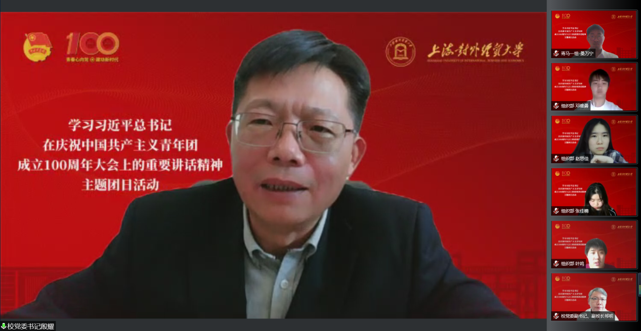 5月17日下午,学校通过线上平台举行学习习近平总书记在庆祝中国共产主义青年团成立100周年大会上的重要讲话精神主题团日活动,校党委书记殷耀,校党委副书记、副校长祁明出席,活动由校团委副书记司徒力云主持。