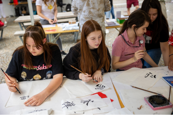 为了给当地师生们带来更多走进美丽中国的“亲身体验”,卢大孔院通过VR技术让每位活动参与者逐一与四川的大熊猫进行了亲密互动,远程欣赏了云南昆明的美丽风光。此外,精心准备的书法临摹、品茗赏乐和中华美食等活动,也吸引了大量的师生驻足参与。活动现场还迎来了卢布尔雅那大学其他院系领导、汉学专家的到访与祝贺。