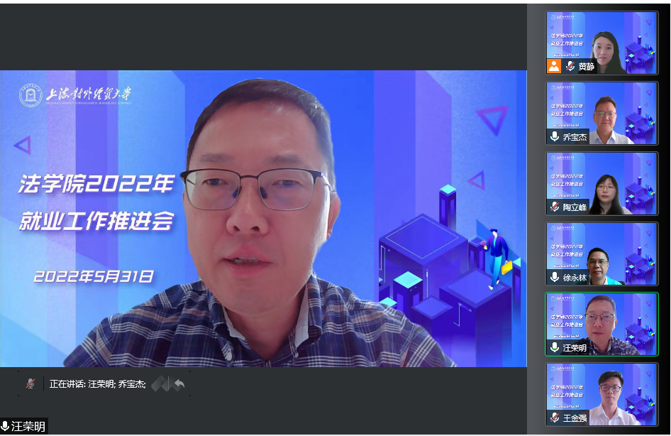 汪荣明对法学院班子高度重视就业工作,前期采取的针对性措施推进就业工作的做法表示了肯定,并对学院如何更好推进就业工作提出三点希望。一是要充分用好不断“扩容”的政策性就业岗位,加强就业新政的宣传和动员。二是细化台账,销号式、精准化开展就业工作。三是强化就业优先政策,靠前发力,适时加力,增强就业举措针对性、有效性。此外,他还要求学院要立足长远,强化招生、培养与就业的联动,结合新的外部形势,及时调整人才培养方案,不断增强必赢626net入口首页法学院的人才培养特色。