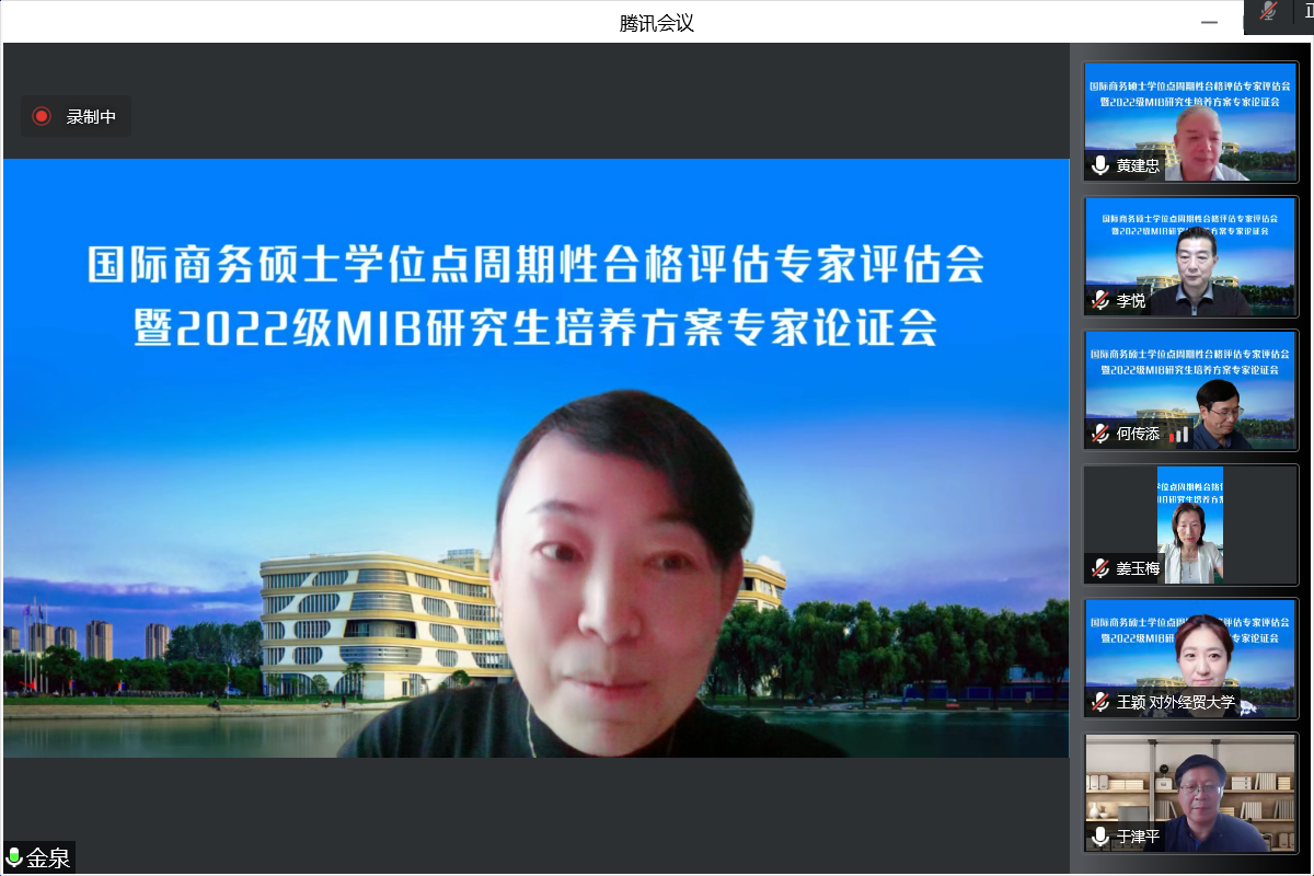 为深入贯彻落实国务院学位委员会、教育部关于印发《学位授权点合格评估办法》的通知及《关于开展2020-2025年学位授权点周期性合格评估工作的通知》等文件精神,必赢626net入口首页于2022年6月6日召开国际商务专业硕士(MIB)学位点周期性合格评估专家评估会暨新版培养方案专家论证会。会议以线上方式举行。