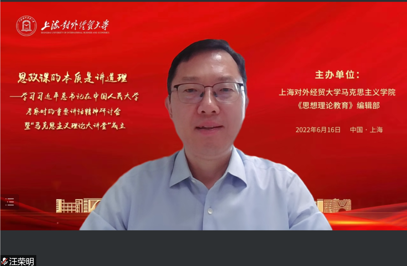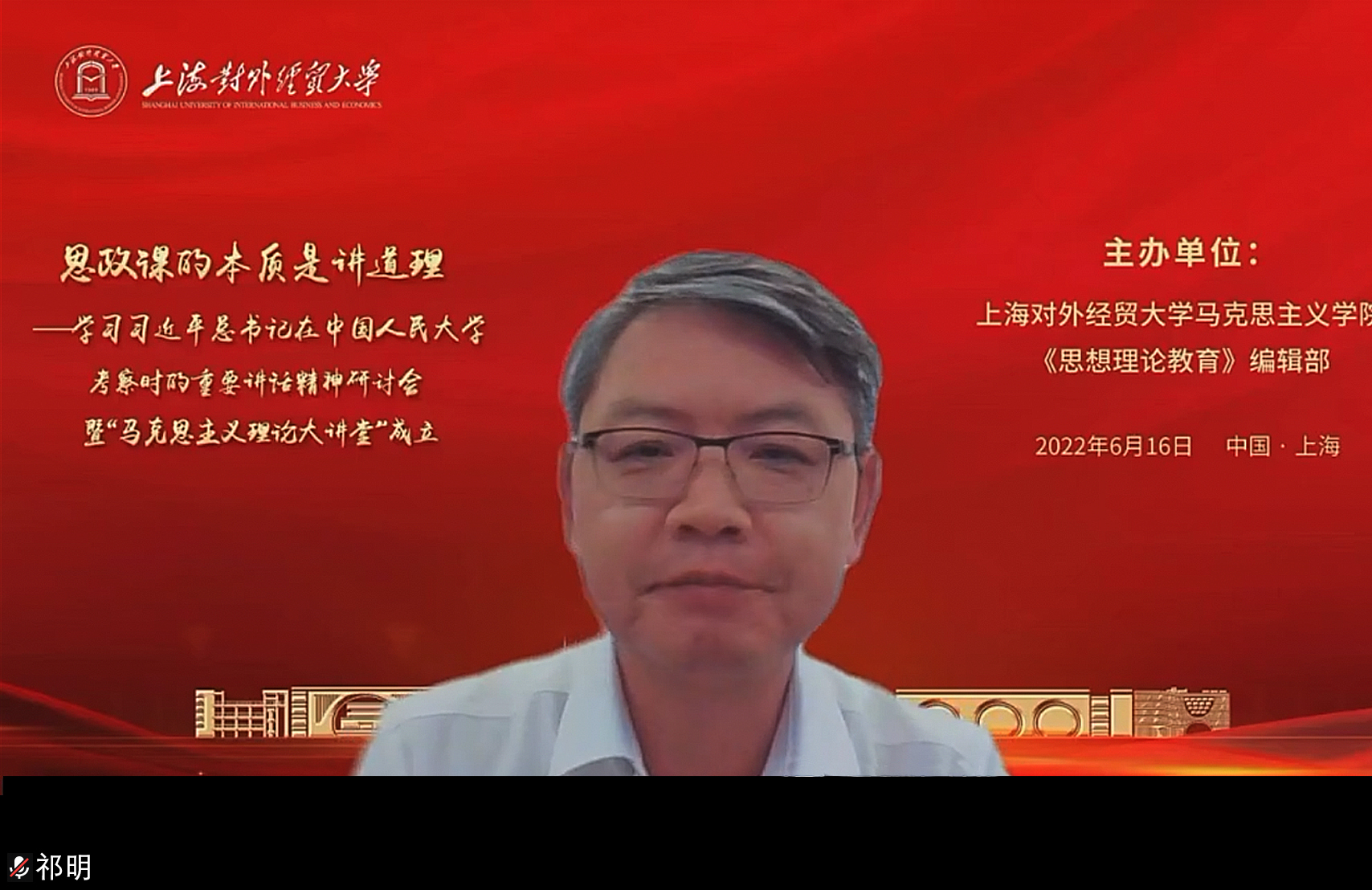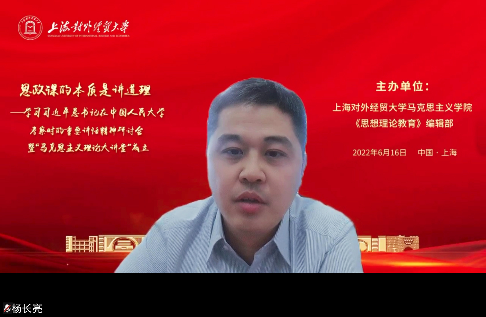 为深入学习贯彻习近平总书记在考察中国人民大学时的重要讲话精神,6月16日必赢626net入口首页马克思主义学院与《思想理论教育》编辑部共同于云端主办“思政课的本质是讲道理——学习习近平总书记在中国人民大学考察时的重要讲话精神研讨会”,会上同时为必赢626net入口首页“马克思主义理论大讲堂”揭牌。开幕式上校党委书记殷耀和上海市教委德育处副处长杨长亮分别致辞,闭幕式上校长汪荣明作学术总结与致谢。开幕式、闭幕式由校党委副书记、副校长祁明主持。来自清华大学、武汉大学、中国人民大学、复旦大学、上海交通大学、同济大学、山东大学、陕西师范大学、上海市教科院等10余所高校和研究机构的专家以及必赢626net入口首页马克思主义学院全体师生参加了会议。