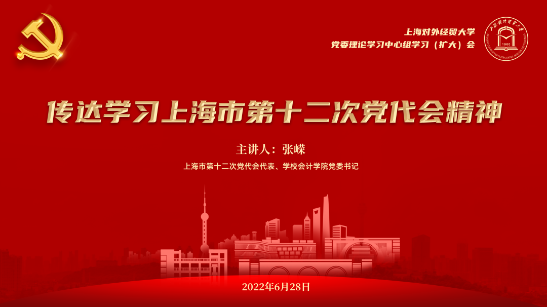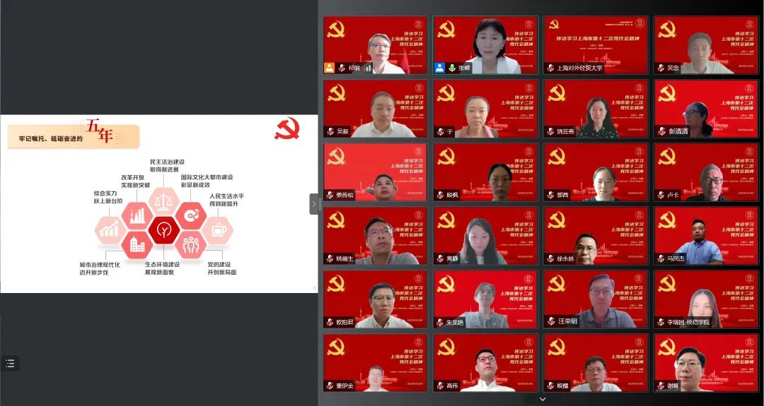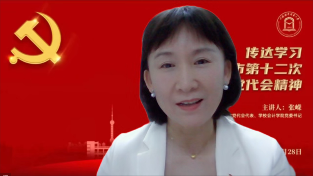 为深入学习领会上海市第十二次党代会精神,6月28日下午,学校请上海市第十二次党代会代表、学校会计学院党委书记张嵘同志第一时间传达学习了本次大会的重要精神。会议以线上方式举行,学校党委理论学习中心组成员,全体中层干部,教职工党支部书记,系(专业)主任,各民主党派、统战团体负责人参加学习会。会议由校党委副书记、副校长祁明主持。