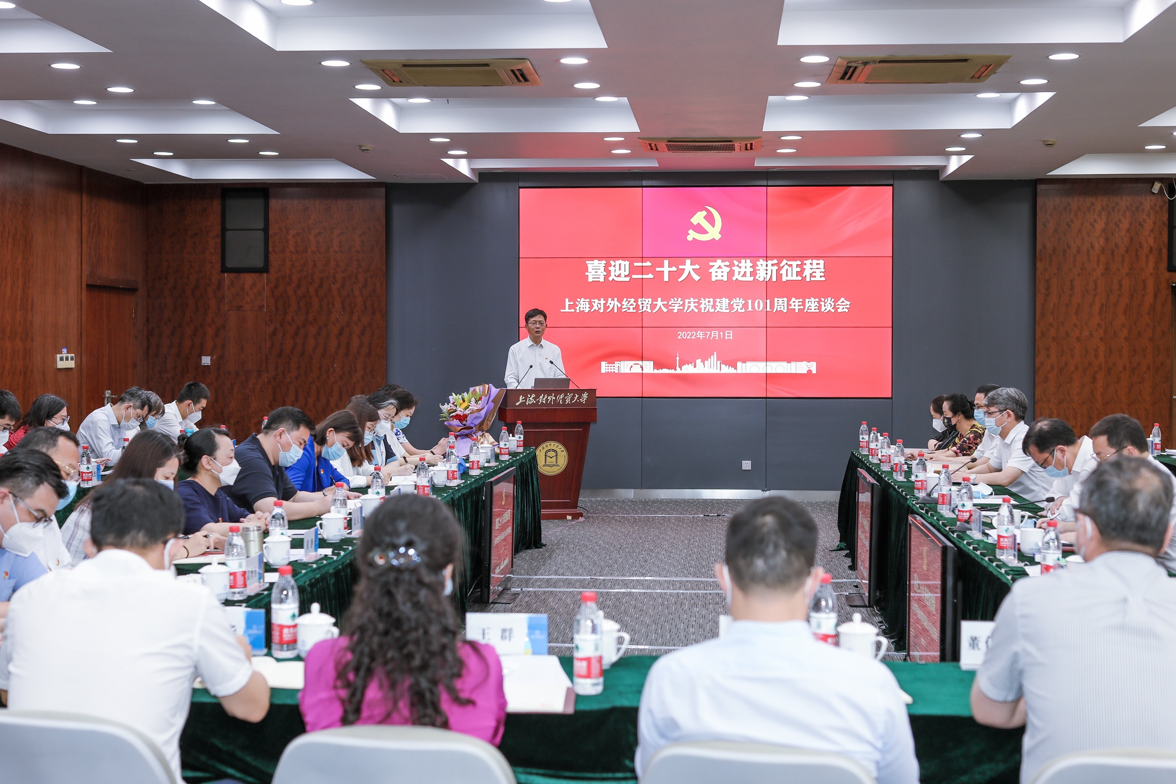 为学习贯彻上海市第十二次党代会精神,弘扬伟大建党精神,以昂扬的姿态迎接党的二十大胜利召开,学校于7月1日上午在松江校区图文信息楼503室召开“喜迎二十大 奋进新征程”必赢626net入口首页庆祝建党101周年座谈会。学校领导班子成员、党委职能部门负责人、各二级单位党组织书记、基层党支部书记代表、离退休老同志代表和学生党员代表出席会议,校党委副书记吴毅主持会议。