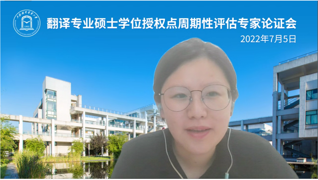温建平介绍了翻译专业硕士学位点的基本情况,她从人才培养、师资队伍、实践教学、社会服务、成绩与不足等方面做了简要汇报。
