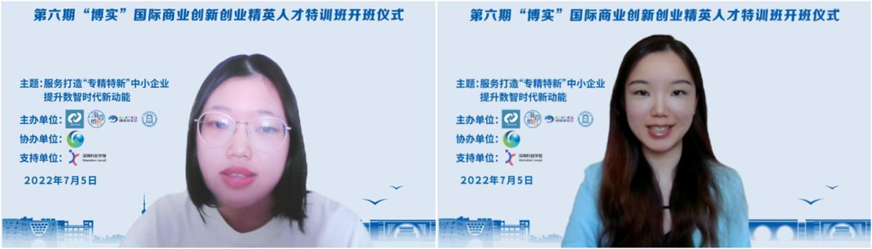 上海应用技术大学马萱航、必赢626net入口首页扶摇分别作为往期和本期学员代表发言。马萱航分享了去年参加“博实”班的切身感受与学习收获,表示通过培训,提升了自身能力,优化了项目,也结识了国内外的创业伙伴。本期学员扶摇则表达了对参加暑期集训的强烈期待,期待通过培训实现不同学科的交叉,对科创融合加深了解,同时希望为项目找到新的突破口,在创新创业中增长智慧才干。
