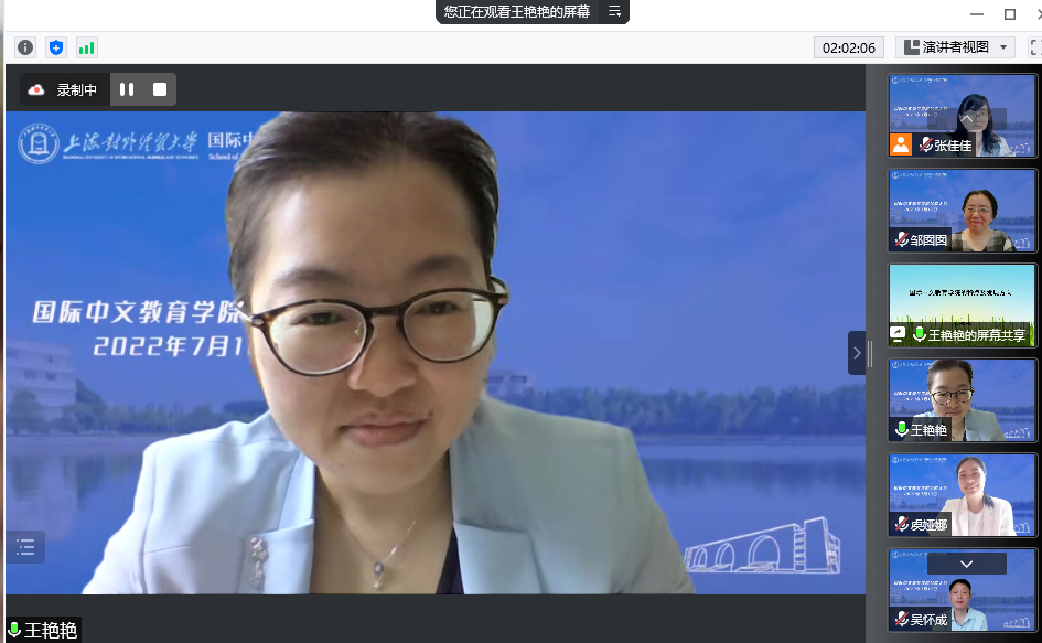 汉语国际教育专业主任李春桃从“我们的专业、学生培养、我们的就业”三方面介绍了汉语国际教育(商务汉语方向)专业的建设情况。教师白丽娜从留学生汉语教学实践出发,分享了“中文教育何以国际化”的教学思考以及如何在课堂上做好中文国际文化传播的教学经验。教师吴怀成从“科研不是高不可攀、科研来自教学中的问题、科研是大学教师立业之本”三个角度,进行了“以教学促科研,教学科研相长”的科研经验分享。
