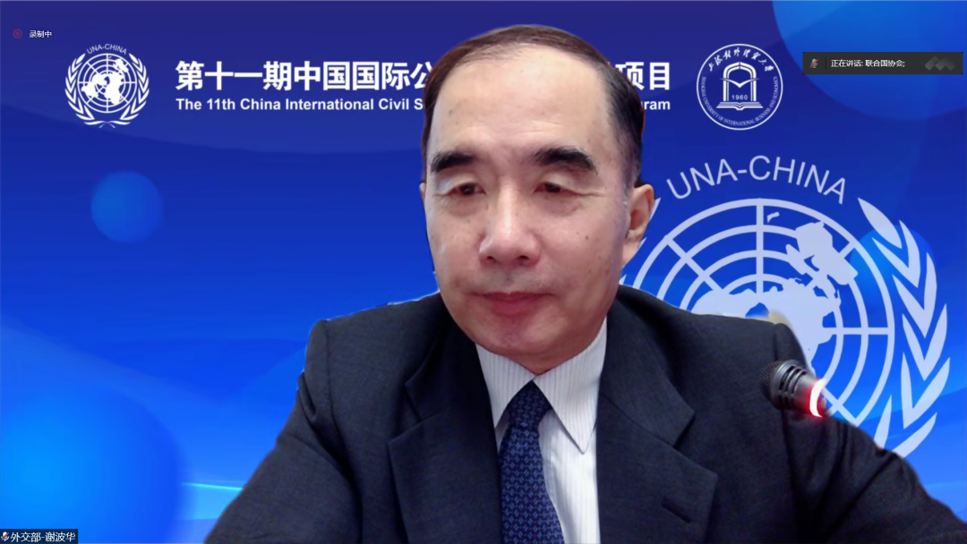 谢波华代表外交部国际司对培训项目的开幕表示热烈祝贺。随后,他分析了当今国际形势,介绍了习近平总书记所提出的构建人类命运共同体的全球发展倡议等重大倡议。他表示,虽然中国在国际组织的人才布局不断完善,但职员数量、级别、结构与我国财政贡献和国际地位并不完全相符。最后,他高度赞扬了本次培训项目,希望参训学员珍惜机会,争取早日成为理想信念坚定、专业素质高、综合能力强、拥有全球视野的复合型人才,为中国的发展贡献青春力量。