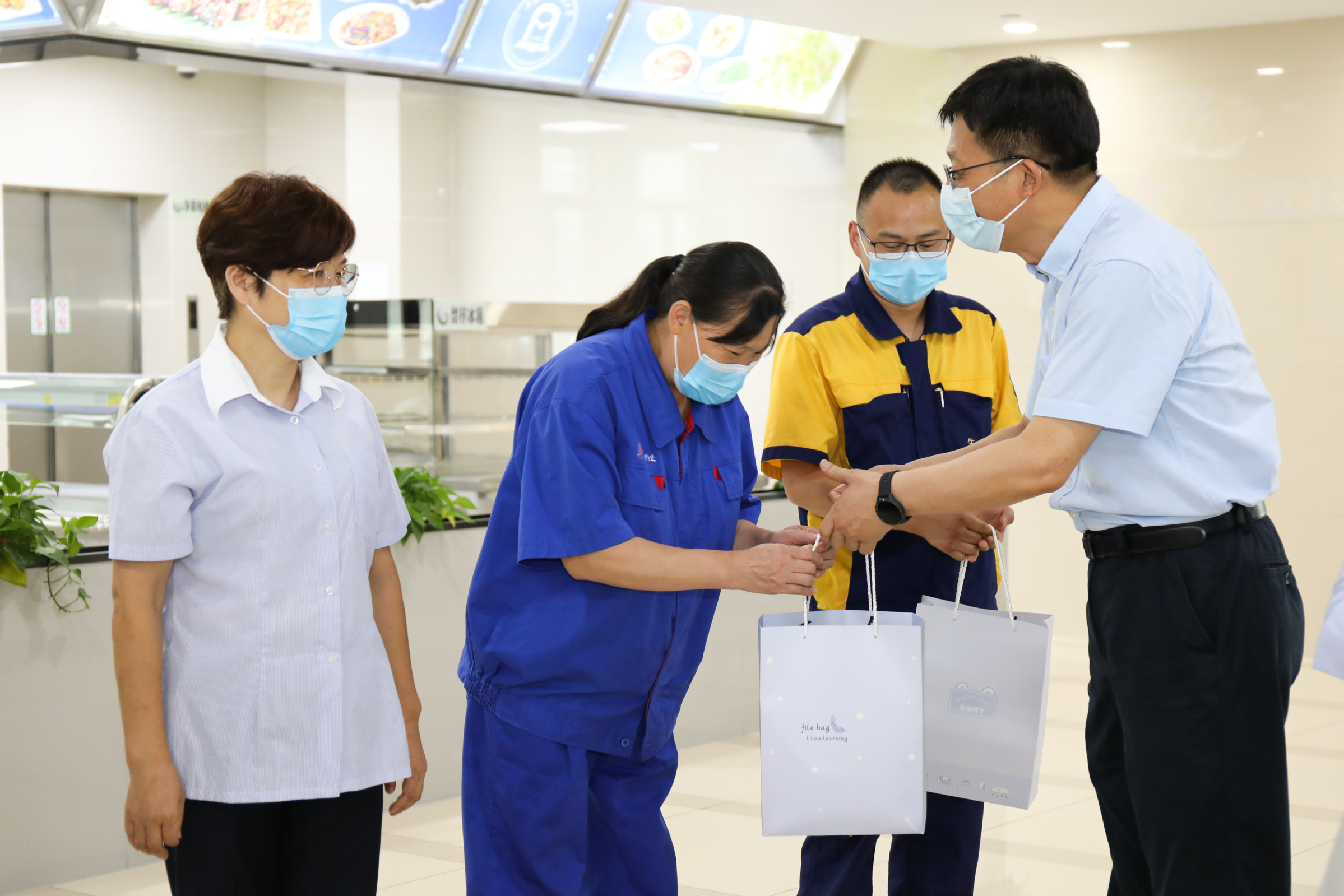 每到一处,校领导都同大家亲切交谈,详细询问在校师生员工的学习、生活、工作情况,对大家在酷暑期间坚持工作表示感谢和问候,为大家送上慰问品,叮嘱大家一定要劳逸结合、做好防暑降温。校领导的关心和慰问让师生员工倍感亲切和鼓舞。