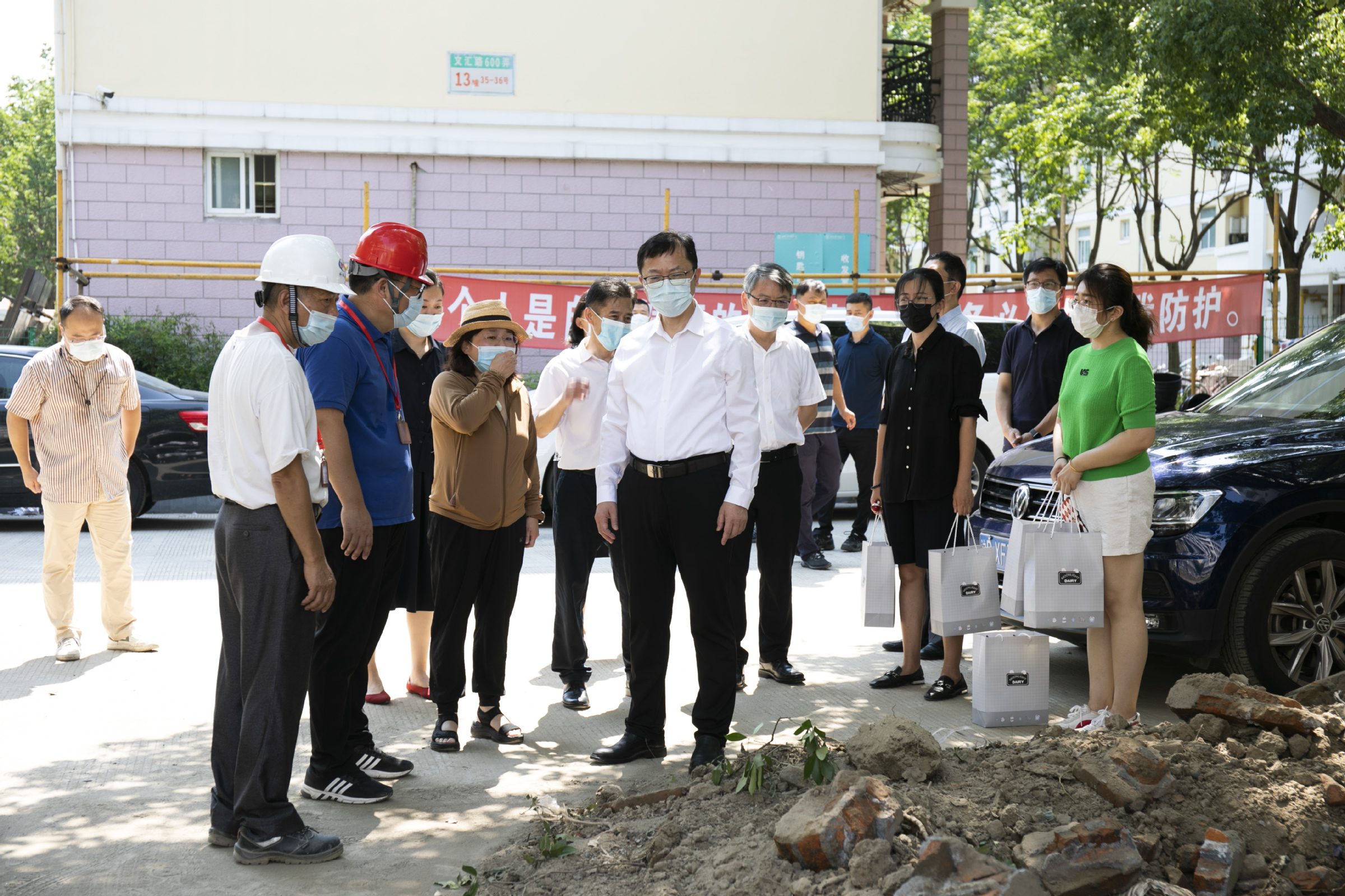 7月26日上午,汪荣明一行赴松江校区慰问。在学生社区在建工地上,校领导详细了解了工程进度、验收标准等方面的情况,叮嘱要在确保安全生产的前提下,按时保质保量完成建设任务。随后,校领导走访了思源餐厅、监控室和图书馆,询问暑期松江校区食堂供餐、后勤服务、安全保卫、疫情防控工作落实情况,了解留校学生学习生活情况。