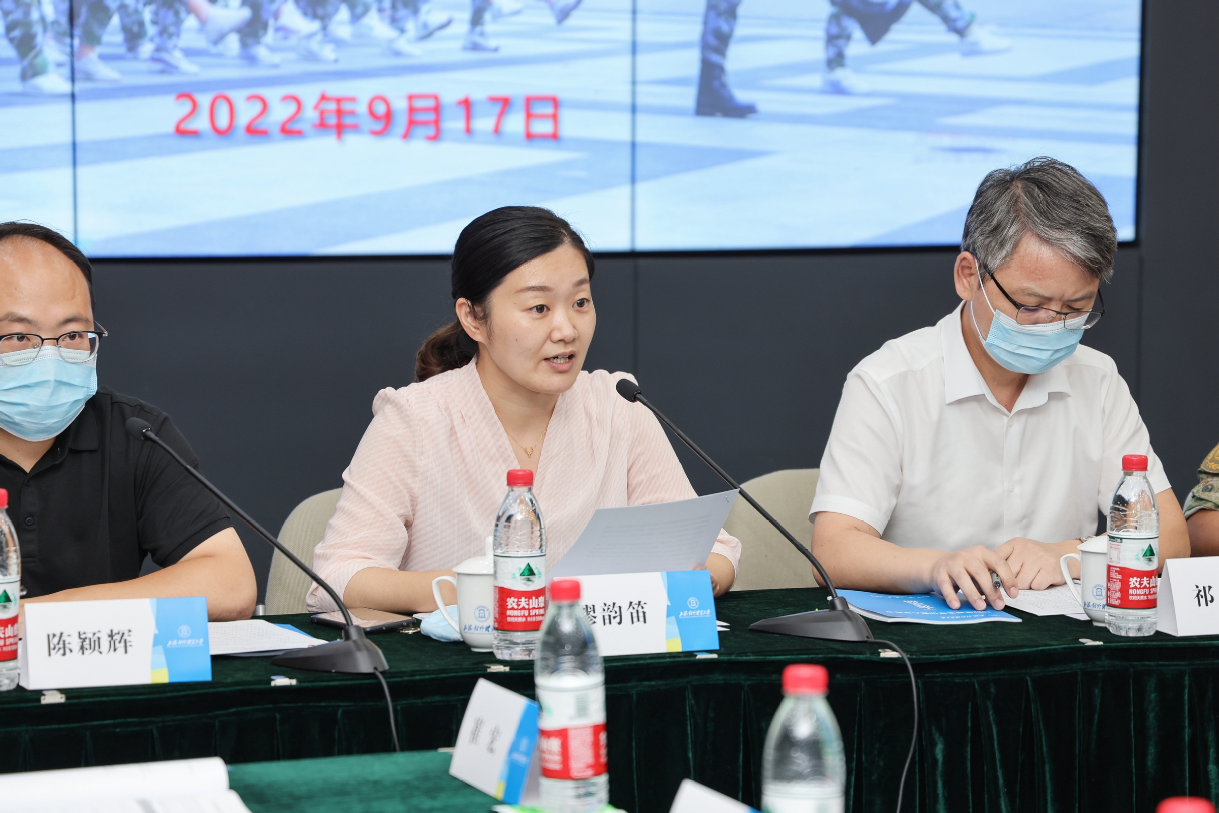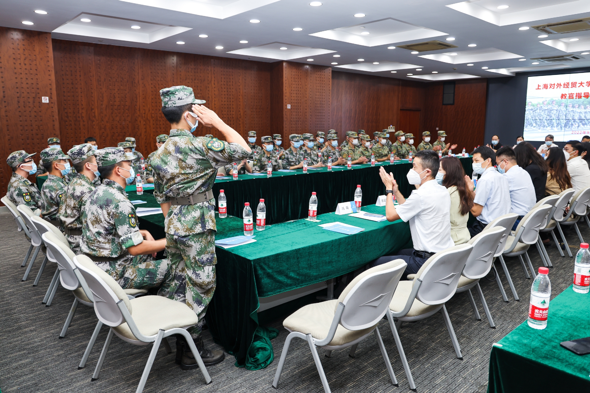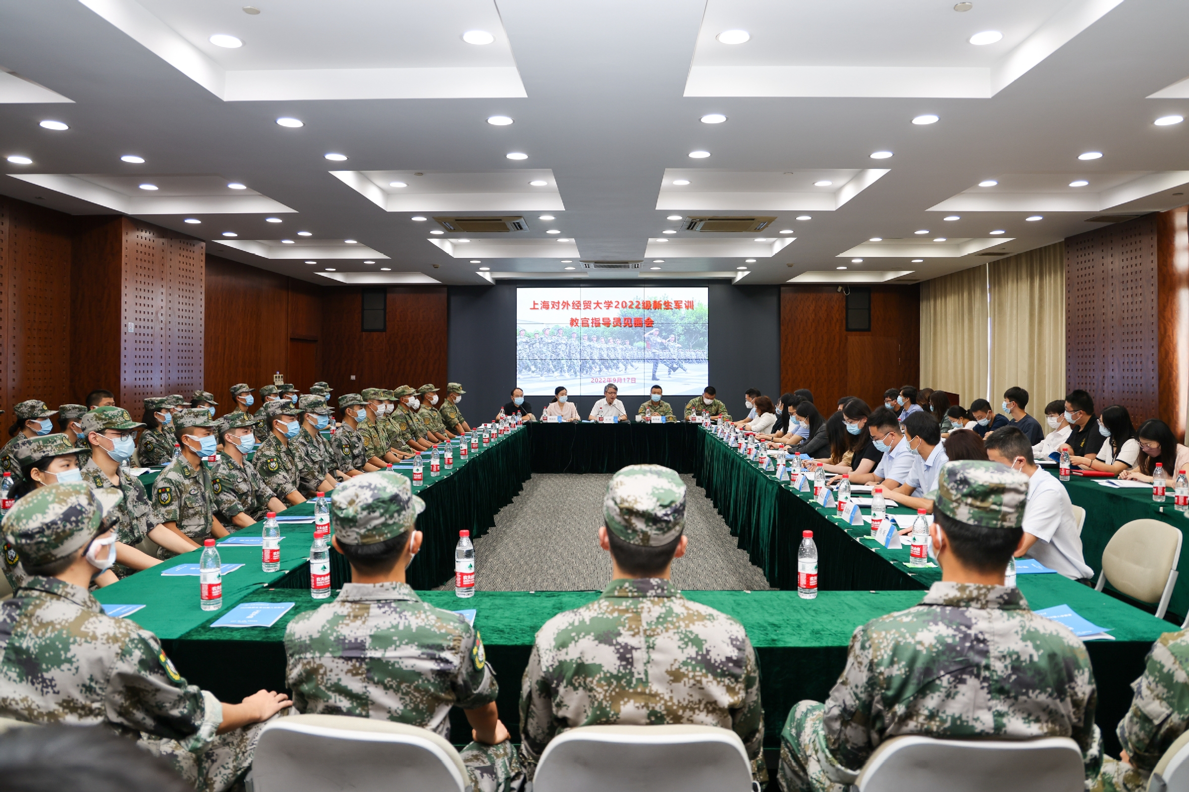 9月17日下午,必赢626net入口首页2022级新生军训教官指导员见面会在图文信息大楼503会议室举行。校党委副书记、副校长、军训总指挥祁明,军训旅旅长鲍俊成,军训旅参谋长陈进,校党委武装部部长、军训旅政委缪韵笛及其他旅部领导、参训部队、学生教官和指导员出席会议。欢迎仪式由校党委学工部副部长、军训旅副政委陈颖辉主持。