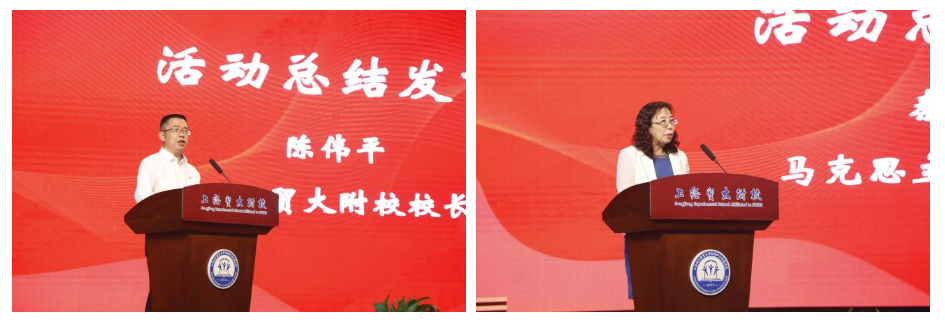 分享会最后,徐永林和朱永进行总结讲话。徐永林肯定了本次暑期社会实践取得的丰硕成果并对获奖团队表示祝贺。他表示青少年思想政治教育是一个接续的过程,要针对青少年成长的不同阶段,有针对性地开展思想政治教育。围绕培养担当民族复兴大任时代新人这一目标,他提出要不断提升社会实践的时代性,要继续做强国家一流课程的平台,做好暑期社会实践品牌项目,坚持开门办思政课。继续依托马院、附校共建的育人基地为平台,积极探索深入推进大中小学思政课一体化建设。