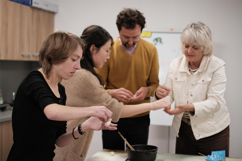 活动期间,参与者认真聆听布杰孔堂教师对饺子制作方法及饺子背后文化内涵的介绍,纷纷就自己感兴趣的内容提问。饺子出锅后,参与者们不约而同地尝试使用筷子吃饺子,活动现场充满欢声笑语。