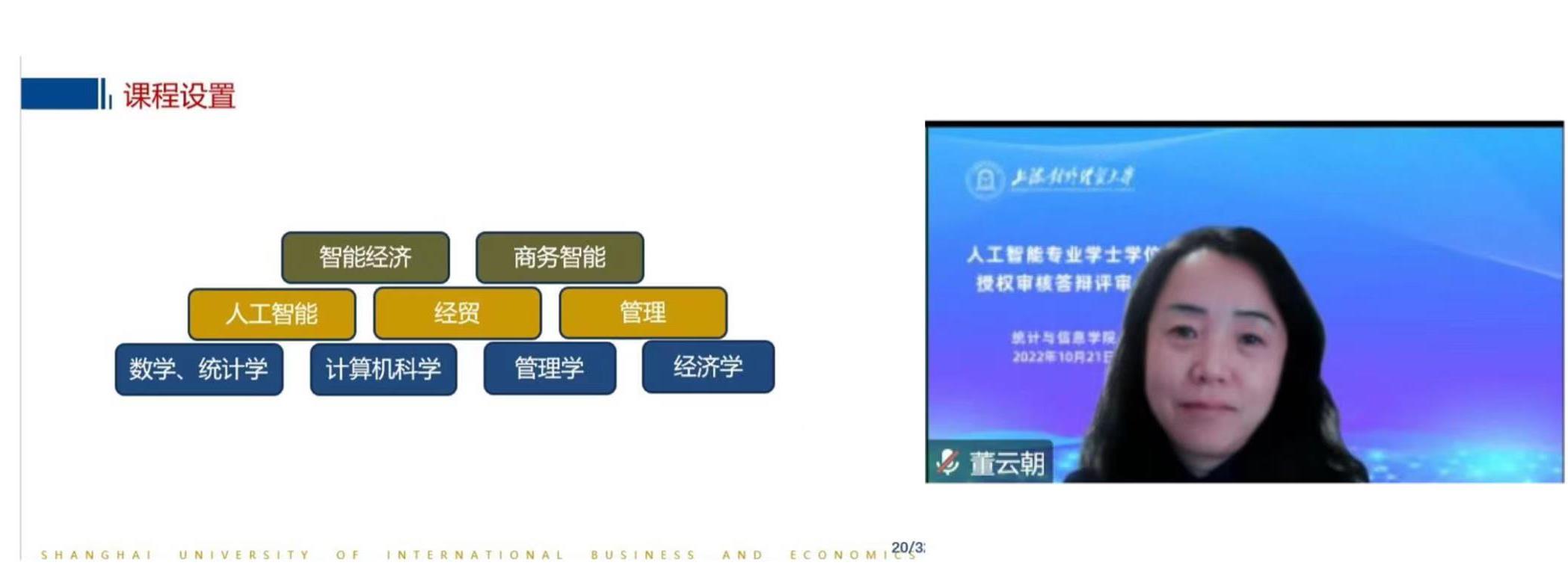 10月21日,上海对外经贸大学人工智能专业学士学位授权审核答辩评审会在线举行,副校长徐永林出席会议并致辞。本次评审会邀请上海海关学院院长丛玉豪教授担任评审专家组组长,复旦大学薛向阳教授、上海交通大学胡卫生教授、东华大学刘晓强教授,以及必赢626net入口首页统计与信息学院刘永辉教授等担任评审专家。校教务处处长朱建明、副处长李医群,统计与信息学院党委书记刘素贞,副院长刘慧、王利娟,人工智能专业负责人董云朝以及信息管理系骨干教师参加评审会。会议由丛玉豪教授主持。