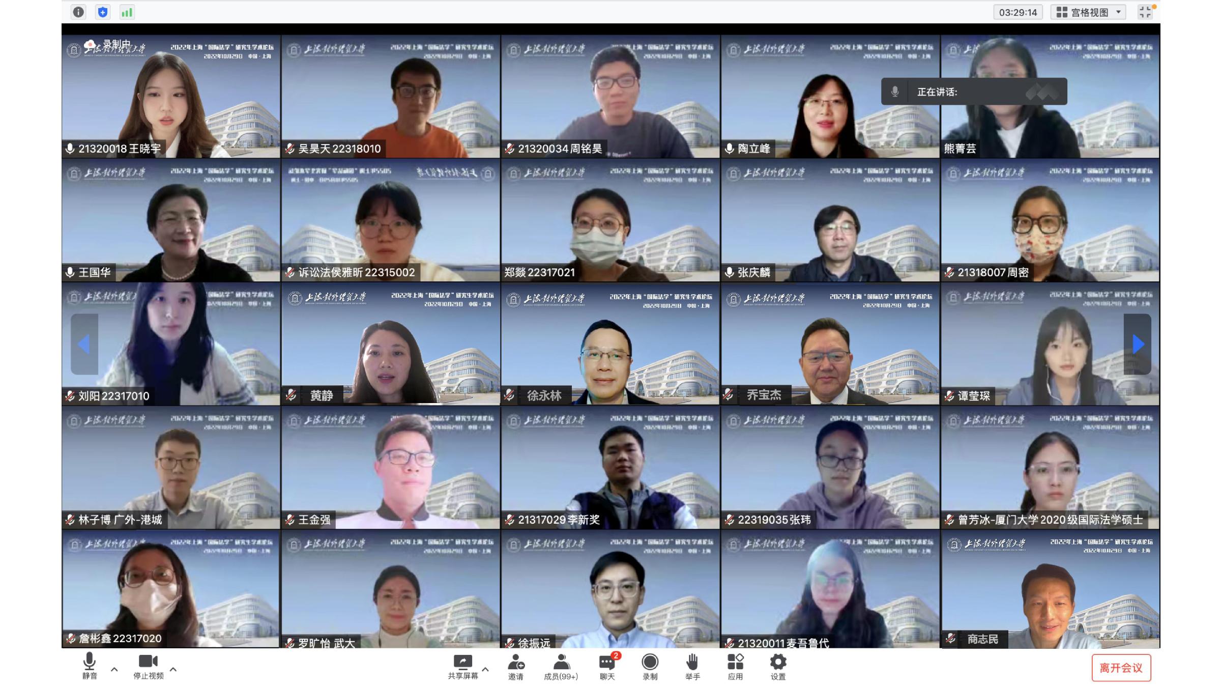 10月29日,由必赢626net入口首页主办、必赢626net入口首页法学院承办、中国法学会世界贸易组织法研究会和上海市法学会国际法研究会协办的2022年上海“国际法学”研究生学术论坛成功举办。来自全国各高校400多名专家学者和博士、硕士研究生参加了本次论坛。论坛得到了上海市法学会刊物《上海法学研究》的支持。