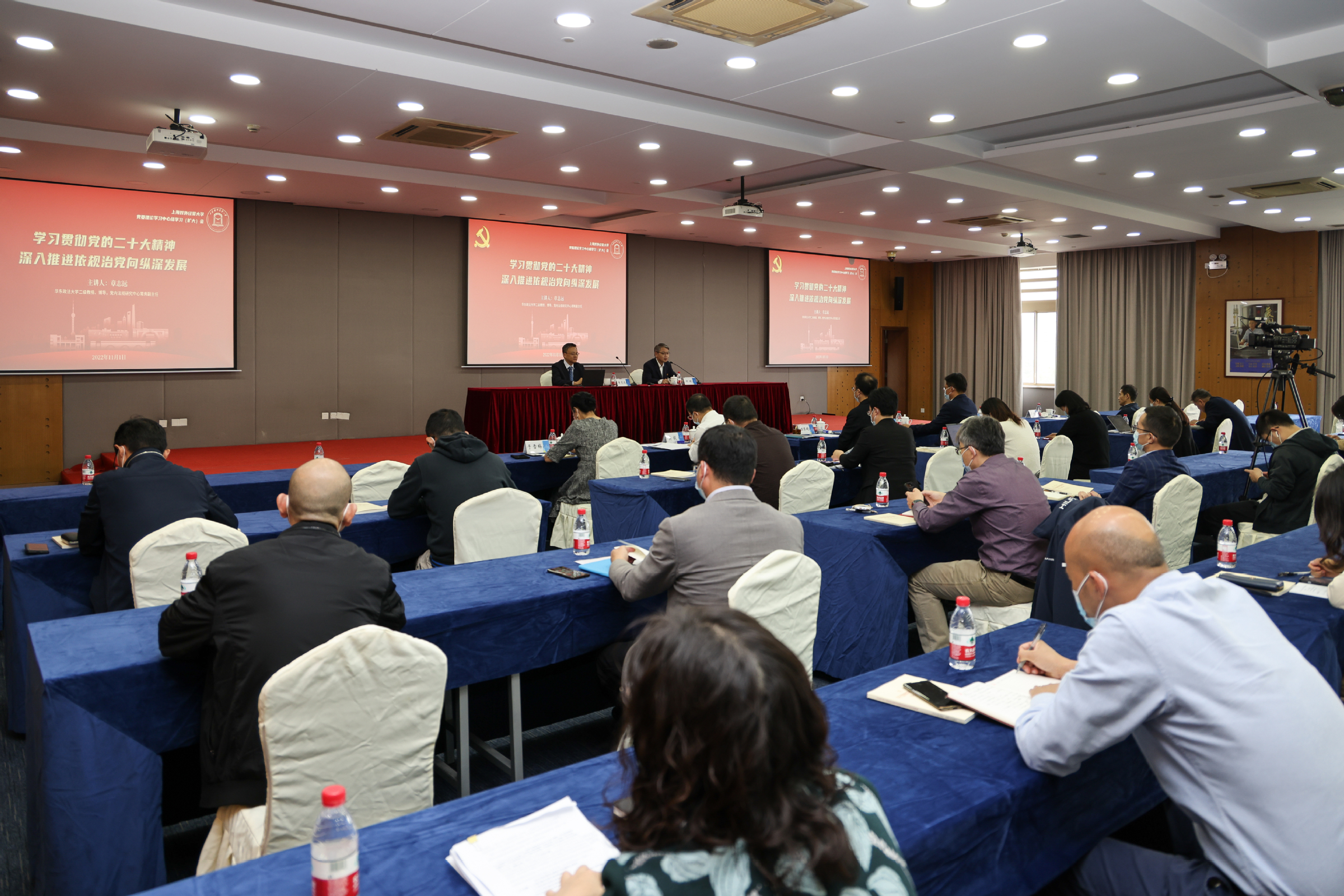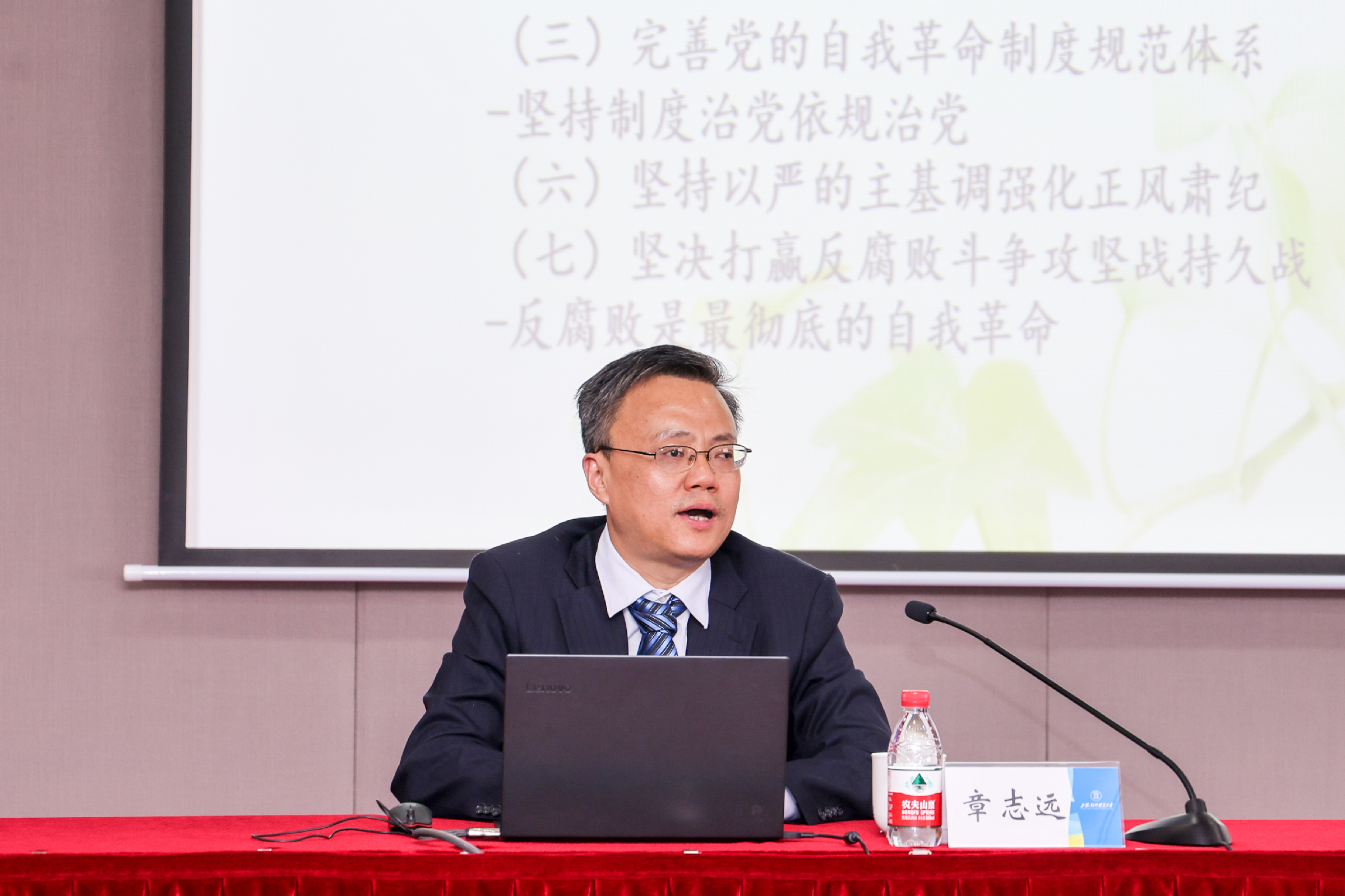 为全面学习宣传贯彻党的二十大精神,深入学习贯彻习近平总书记关于依规治党的重要论述精神,11月1日下午,学校邀请华东政法大学教授、博士生导师章志远作主题为“学习贯彻党的二十大精神,深入推进依规治党向纵深发展”专题辅导报告。会议以线上线下相结合的方式举行,学校党委理论学习中心组成员、全体中层正职干部在信息楼526会议室参加报告会,中层副职干部、教工党支部书记、系(专业)主任、巡察办成员、巡察组成员线上参加报告会。会议由校党委副书记、副校长祁明主持。