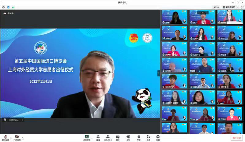 11月1日,第五届中国国际进口博览会必赢626net入口首页志愿者出征仪式线上举行。校党委副书记、副校长祁明,学校相关部门负责人、各学院党委(党总支、直属党支部)副书记、团组织负责人以及全体110名进博会志愿者参加出征仪式。