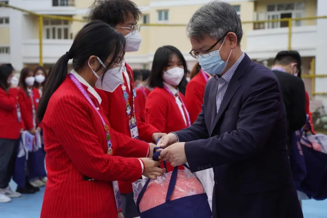 领导、老师们向全体志愿者们赠送了加油大礼包,鼓励志愿者们用奋斗诠释初心,以实干彰显风采,继续以真诚的态度、专业的服务、优异的成绩完成好本次志愿服务工作。