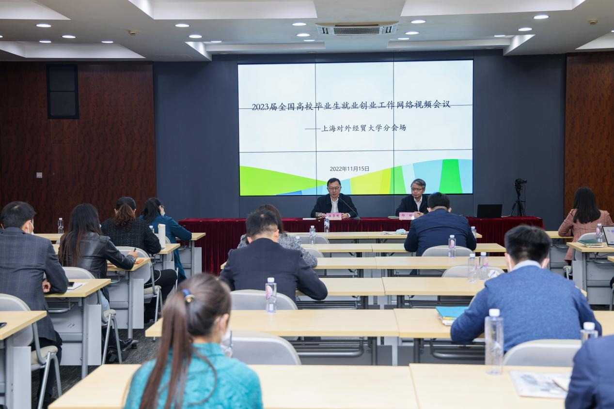 11月15日下午,教育部、人力资源和社会保障部在京召开2023届全国普通高校毕业生就业创业工作网络视频会议,全面部署做好2023届高校毕业生就业创业工作。学校在松江校区图文信息大楼503室设分会场,校长汪荣明,校党委副书记、副校长祁明,招生就业处、党委学(研)工部主要负责人,各学院主要负责人、党委(党总支)副书记,全体2023届毕业班辅导员参加会议。