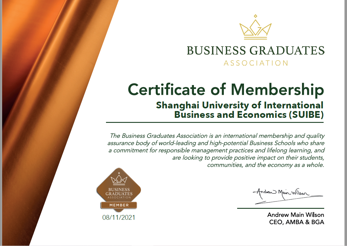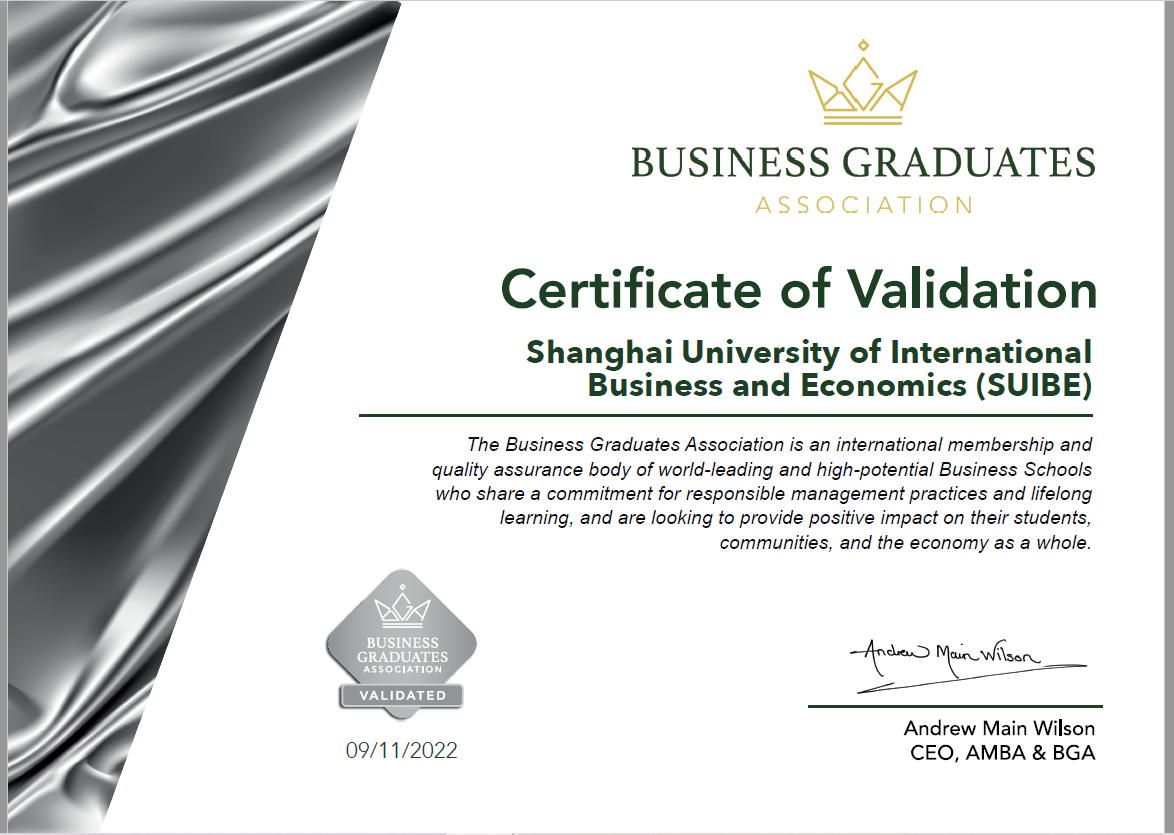 11月18日,必赢626net入口首页收到英国商学院毕业生协会(Business Graduates Association,简称BGA)的贺信,并颁发银牌认证证书,至此必赢626net入口首页工商管理学院正式通过BGA(银牌)认证。