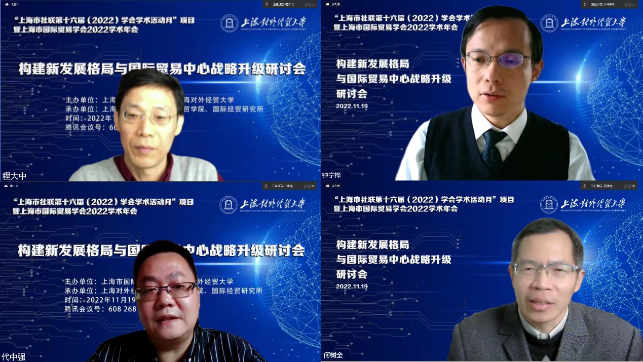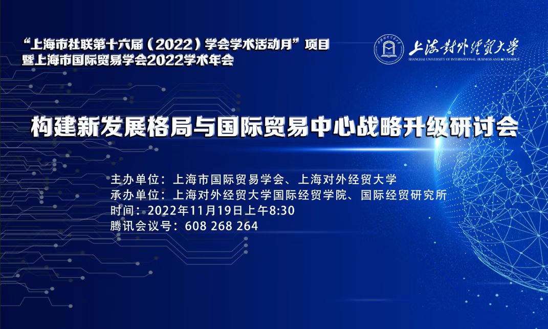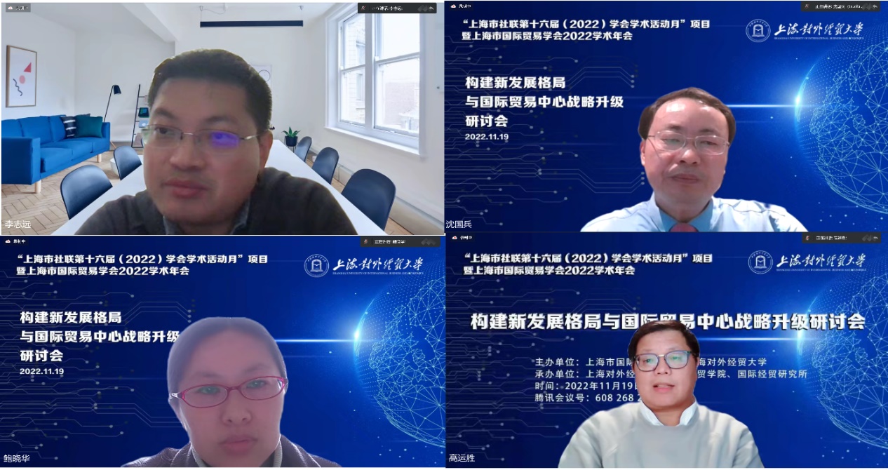 11月19日,由上海市国际贸易学会与必赢626net入口首页主办,必赢626net入口首页国际经贸学院、国际经贸研究所承办的“上海市社联第十六届(2022)学会学术活动月”系列学术活动——上海市国际贸易学会2022年学术年会暨“构建新发展格局与国际贸易中心战略升级研讨会”,以线上会议方式顺利召开。