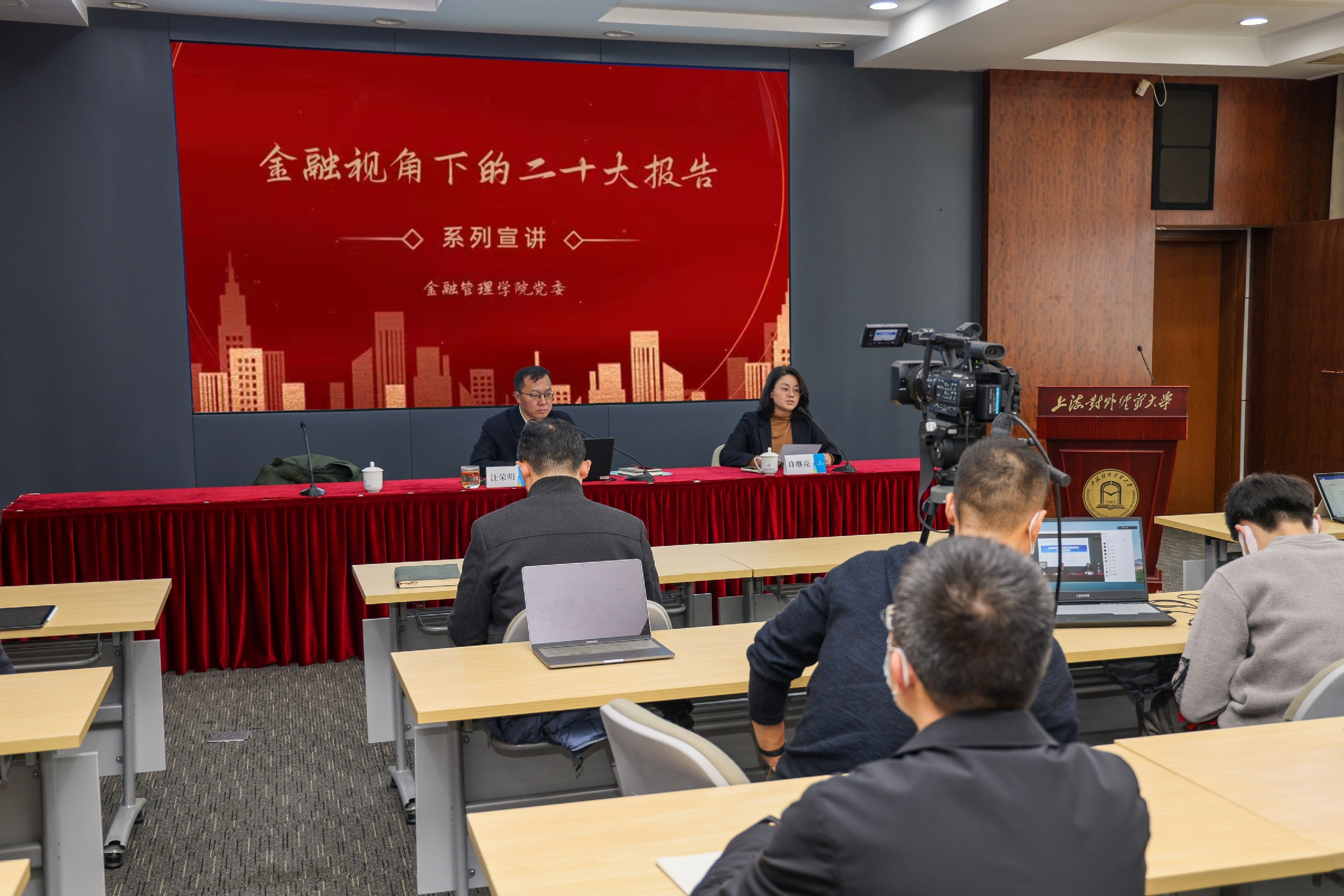 11月29日下午,为深入学习宣传党的二十大精神,贯彻落实习近平总书记关于教育的重要论述,校党委宣传部和金融管理学院党委牵头主办的“金融视角下的二十大报告”学习宣讲活动拉开帷幕,首场宣讲由汪荣明校长作主题报告。报告会在图文信息大楼503报告厅举行。金融管理学院全体领导班子成员、教工支部书记、系主任、各项目主任、保险学系全体教师、青年教师代表、保险专业研究生等50人现场参加活动。宣讲活动同时通过腾讯会议在线直播。活动由学院党委书记许继亮主持。