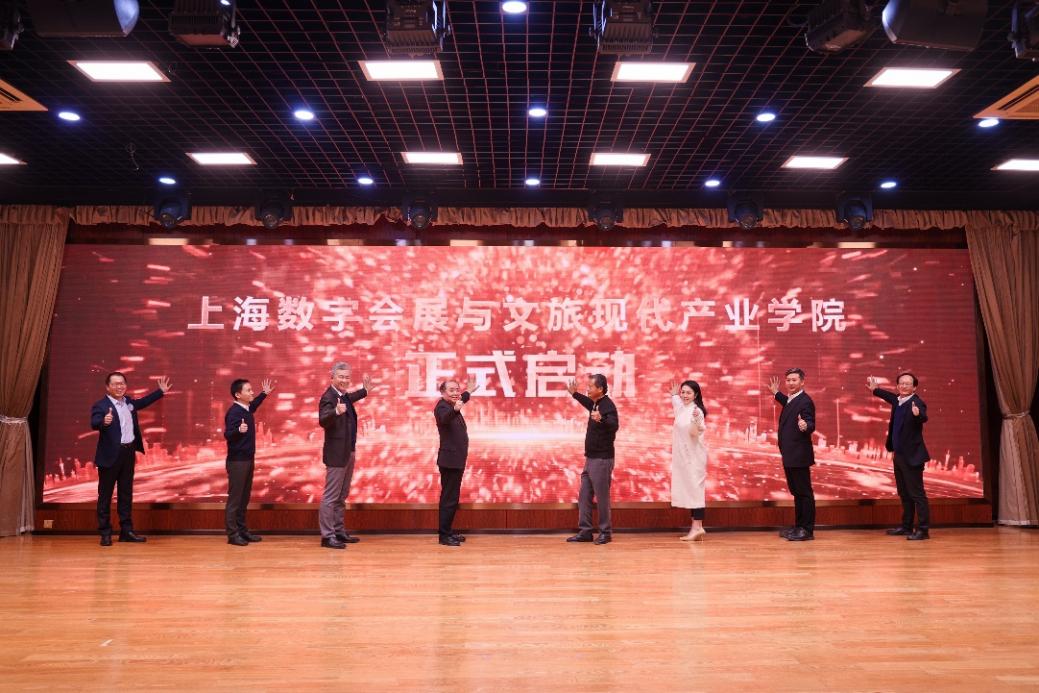 在汪荣明和陈先进的见证下,王明亮、屠建卿、李征伟、万涛、穆严、邓亚乔、王春雷、教务处处长朱建明共同为上海数字会展与文旅现代产业学院点亮启动标识,标志着必赢626net入口首页第二个现代产业学院正式启动。