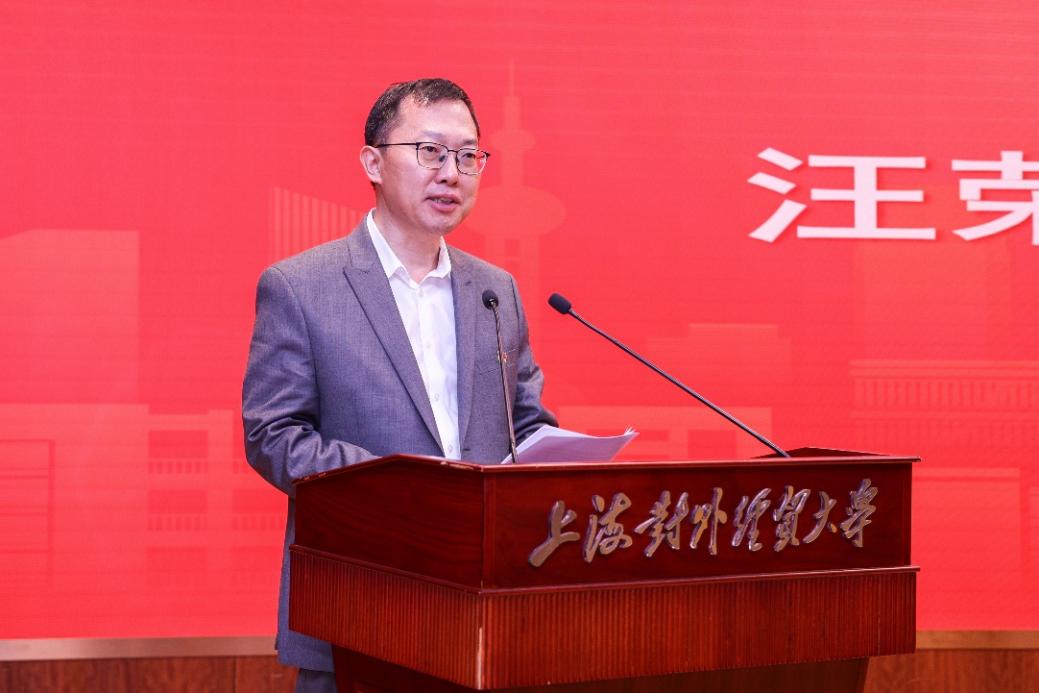 汪荣明为会展与传播学院揭牌并致辞。他代表学校对会展与传播学院正式揭牌表示祝贺,对新学院成立以来取得的良好工作成效表示肯定,对长期以来关心和支持学校发展的相关合作单位表示感谢。他表示,如何在新征程中发挥自身的特色优势,奋力担当作为,是所有学院的必答题;基于学校总体发展规划以及对产业发展趋势和学科融合发展的研判,学校决定将新闻学本科专业、新闻与传播专业硕士以及人文教育中心划入会展与旅游学院,组建新的会展与传播学院,这对于学院解好“必答题”是一次难得的历史机遇。他希望全院师生员工团结一致、踔厉奋发,以师资队伍建设为基础,以提高人才培养质量为根本,以提升学科建设水平为引领,以增强社会服务能力为己任,以促进“政产学研用”深度融合的现代产业学院发展为抓手,整合办学资源,优化专业布局,丰富办学内涵,全面提高学院的人才培养质量和学科竞争力,为学校建设成为世界知名、国内一流、特色鲜明的高水平财经类大学作出新的更大贡献。