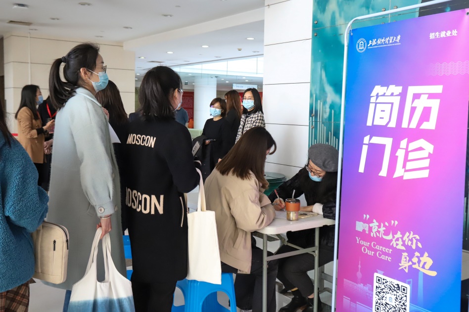 在各职能部门、学院的大力协同下,招生就业处对参会单位精心遴选,同时根据学校当前毕业生就业情况,对相关行业、重点领域用人单位做了重点邀请,促进岗位精准匹配。此次参会单位涵盖了金融、贸易、专业服务、互联网IT、教育、航运交通、会展等多个行业,吸引了中信证券、上海证券、上海农村商业银行、圣戈班(中国)、上海新华发行集团等诸多知名企业参会。招聘会现场气氛热烈,毕业生积极应聘,部分低年级学生也来到现场了解情况。为了助力毕业生顺利求职,招聘会现场设置了简历“门诊”,邀请企业专家、学校职业生涯咨询师现场为学生提供“一对一”“面对面”的指导咨询。
